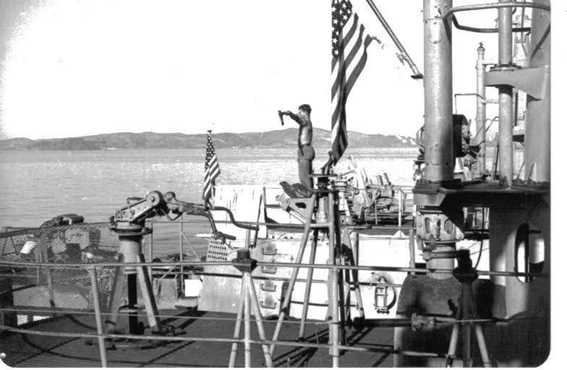 ![]() 0837227 | 386k | William D. Morast spends a day at the office. | Photo courtesy of William D. Morast, plankowner, via his son Steve Morast. | |