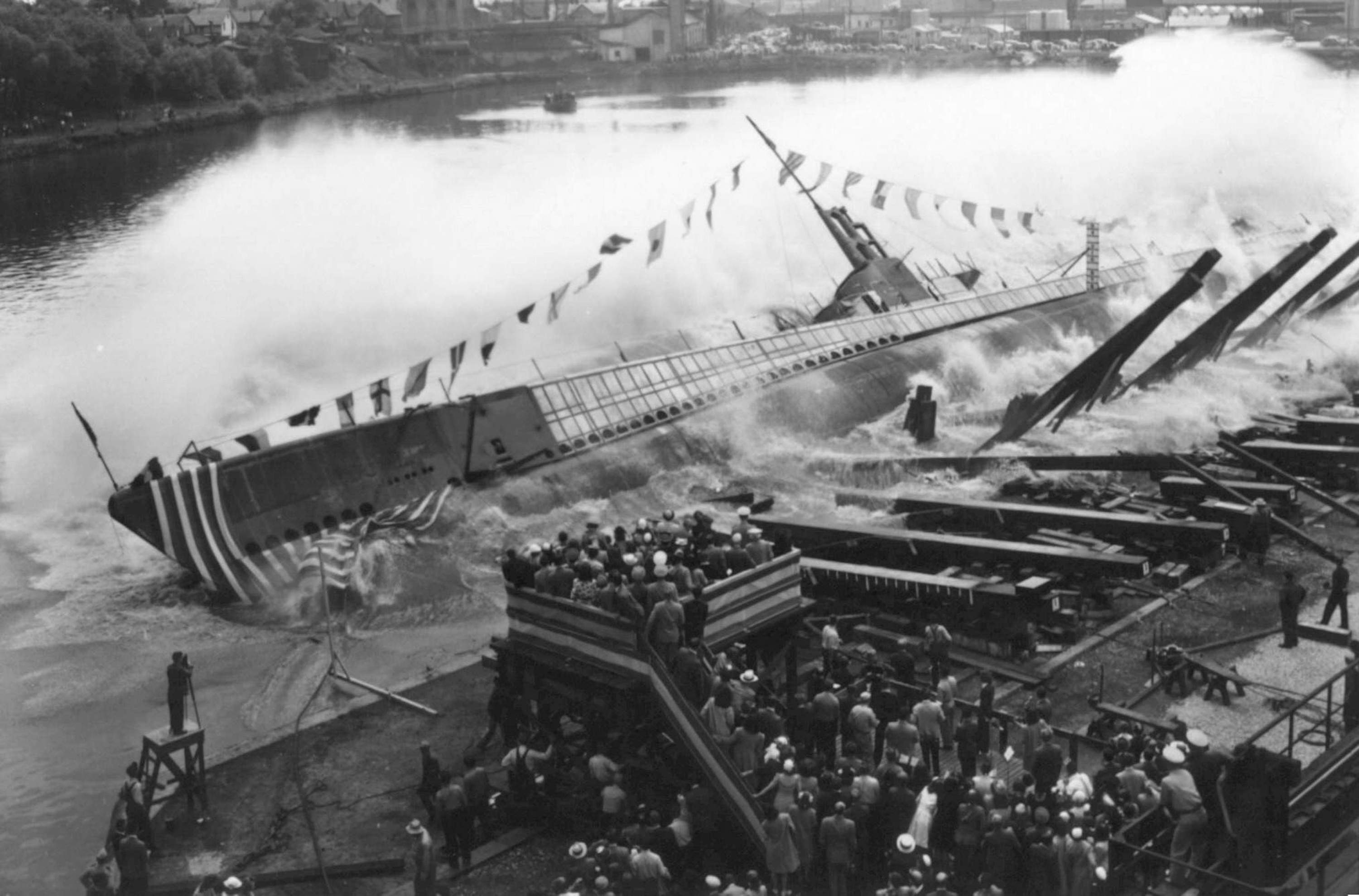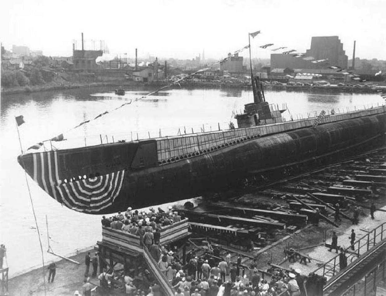 ![]() | 443k | Lamprey (SS-372) finds her weight and rights herself immediately after launching at Manitowoc Shipbuilding Co., Manitowoc, WI., 18 June 1944. | Photo by Harry Berns, Official photographer of the Manitowoc Shipbuilding Co., Manitowoc, WI. USN photo courtesy of ussubvetsofwwii.org. |