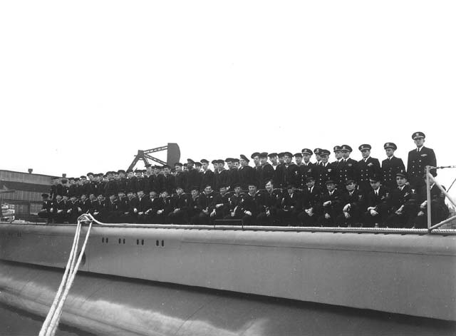 ![]() | 43k | Plankowners pose on board the Lamprey (SS-372) for her commissioning photo at Manitowoc Shipbuilding Co., Manitowoc, WI., 17 November 1944. | Submitted by Larry Bohn, courtesy of the Wisconsin Maritime Museum, home of the Cobia (SS-245). John D. Alden, author of The Fleet Submarine in the U.S. Navy: A Design and Construction History is the officer 7th from left. | |