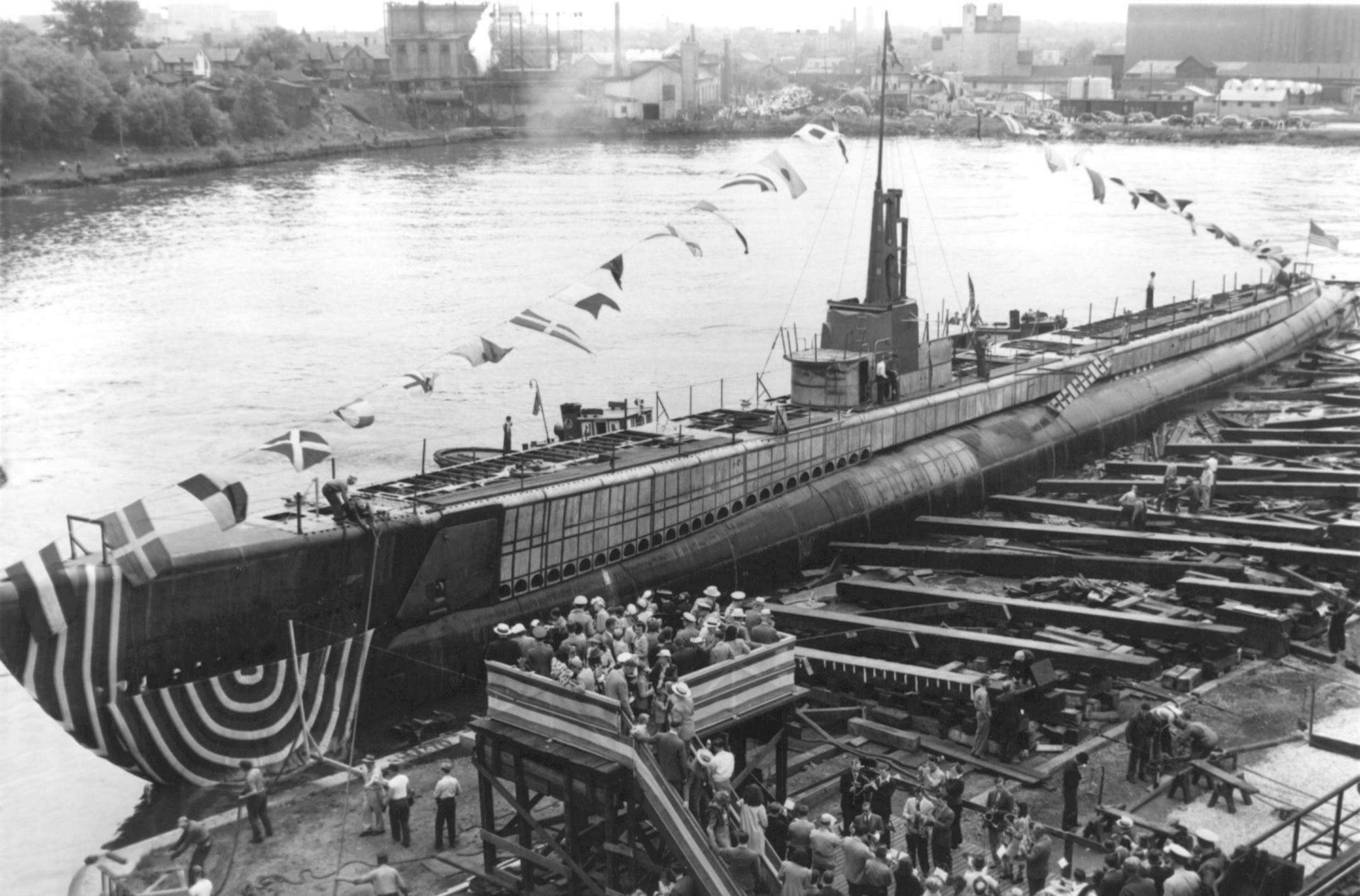![]() | 130k | Crowds start to gather for the launching of the Lamprey (SS-372) while preliminary inspections are made, at Manitowoc Shipbuilding Co., Manitowoc, WI., 18 June 1944. | Photo by Harry Berns, Official photographer of the Manitowoc Shipbuilding Co., Manitowoc, WI. Submitted by Larry Bohn, courtesy of the Wisconsin Maritime Museum, home of the Cobia (SS-245) | |