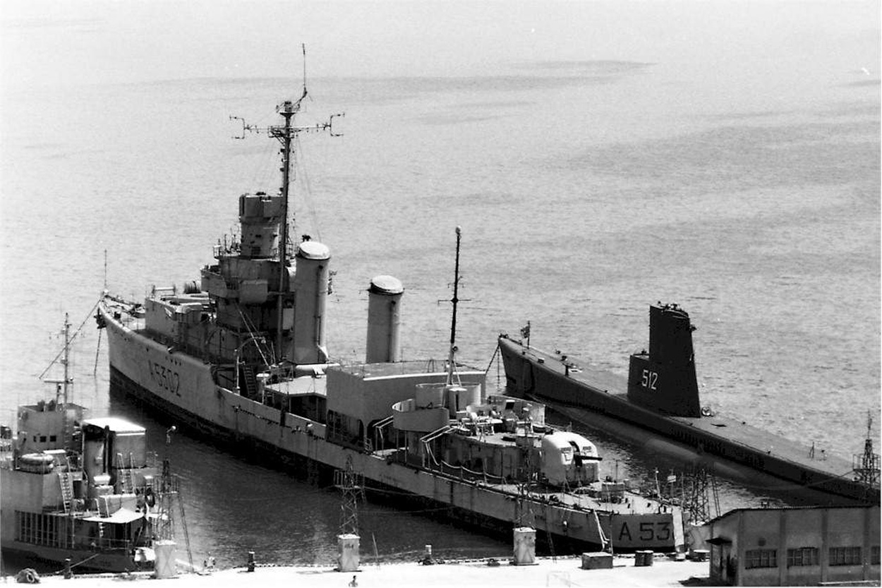 287k | Submarine Evangelista Torricelli (S-512) & the former Nicholson (DD-442) at La Spezia, Italy on 22 May 1975. | Photo courtesy of Carlo Martinelli via Bill Gonyo. | |