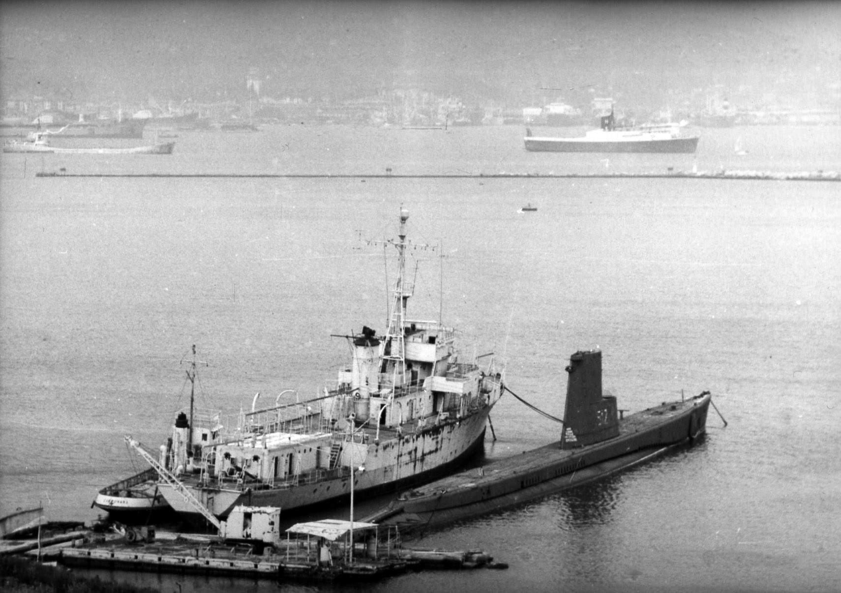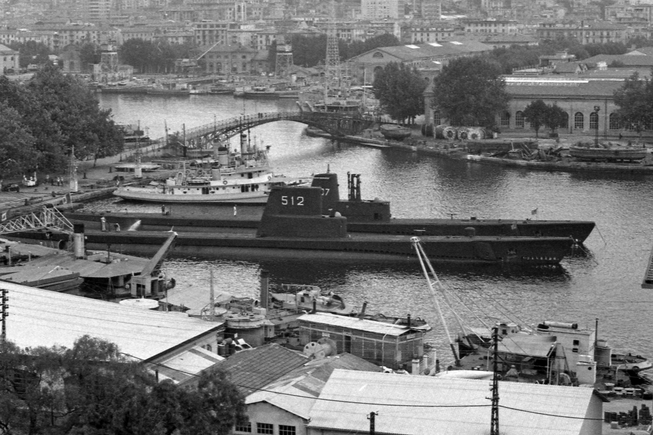 384k | Alfredo Cappellini (S-507), ex-Capitaine (SS-336) is inboard of the Evangelista Torricelli (S-512) at La Spezia, Italy, 26-08-69. | Photo courtesy of Carlo Martinelli. | |
