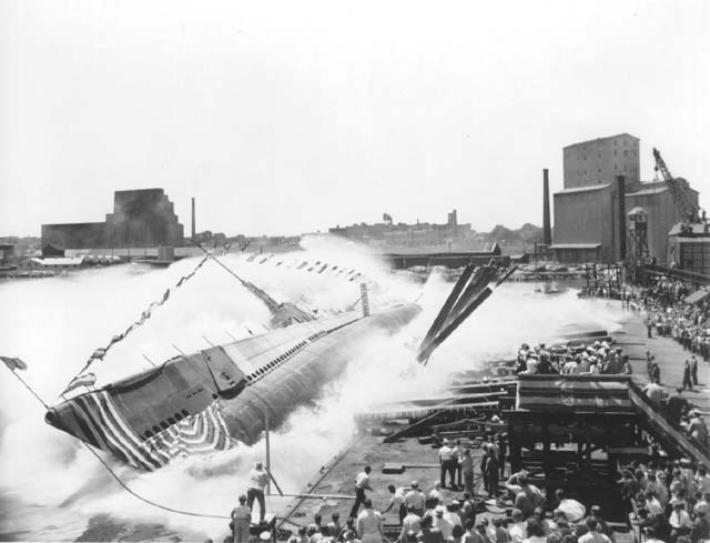 ![]() | 38k | Lizardfish (SS-373), about to hit the water with a splash at her launching at Manitowoc Shipbuilding Co., Manitowoc, WI., 16 July 1944. | Photo by Harry Berns, Official photographer of the Manitowoc Shipbuilding Co., Manitowoc, WI. Submitted by Larry Bohn, courtesy of the Wisconsin Maritime Museum, home of the Cobia (SS-245) | |