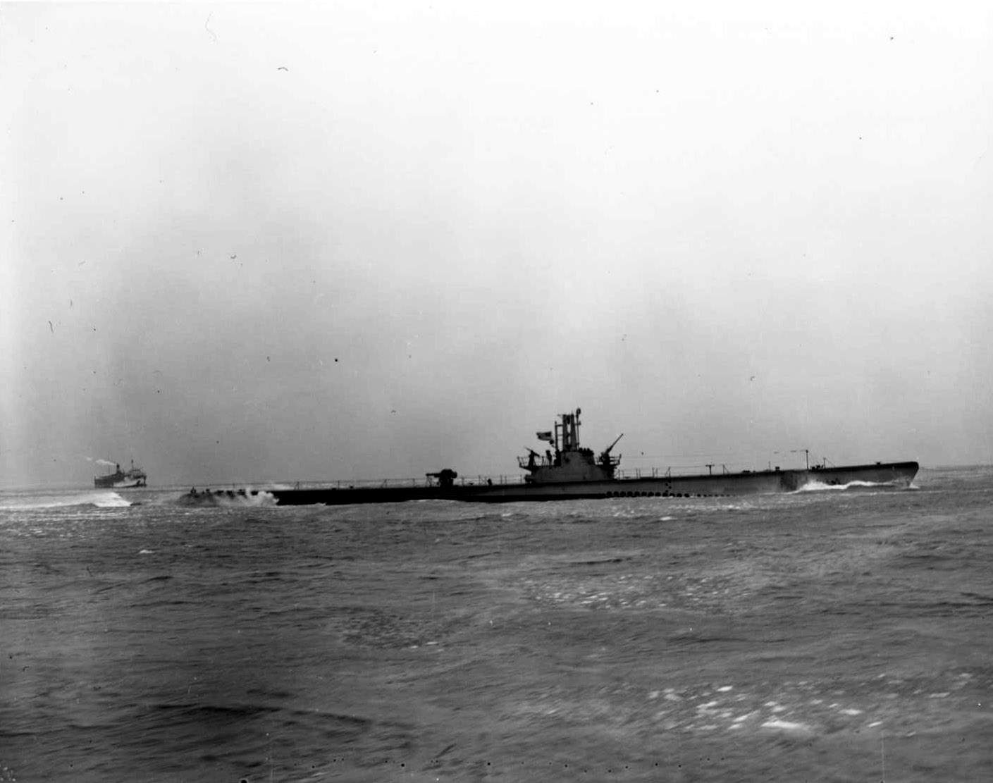 199k | A ways to go for the Lizardfish (SS-373) on 16 July 1944. | Photo courtesy of the Wisconsin Maritime Museum, home of the Cobia (SS-245) | |