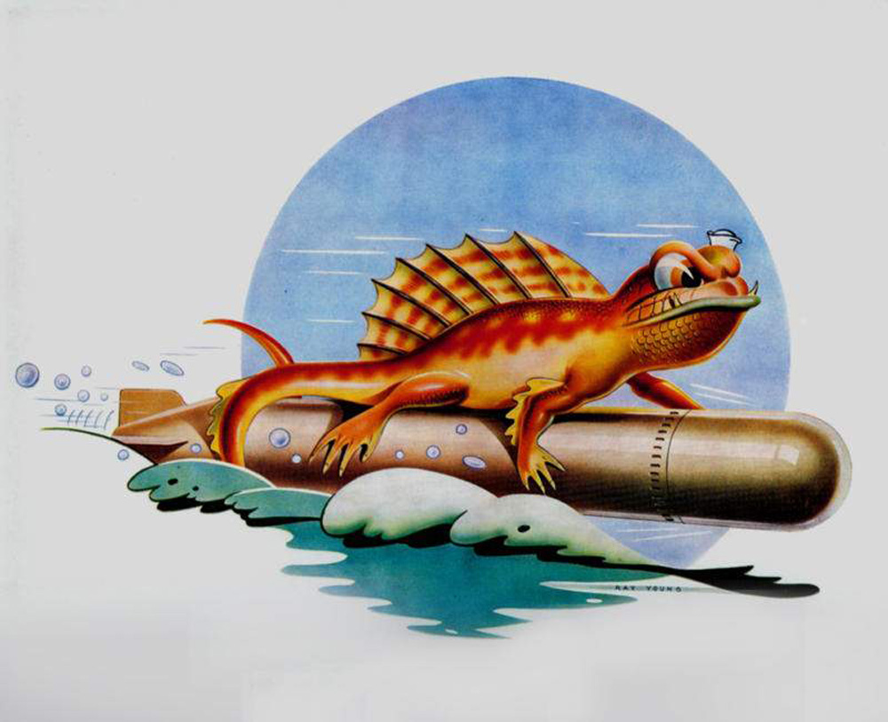 ![]() | 187k | Insignia of the Lizardfish (SS-373) designed for the submarine by Ray Young, circa 1944. | Photo by Ray Young, courtesy of his son, William Young. | |
