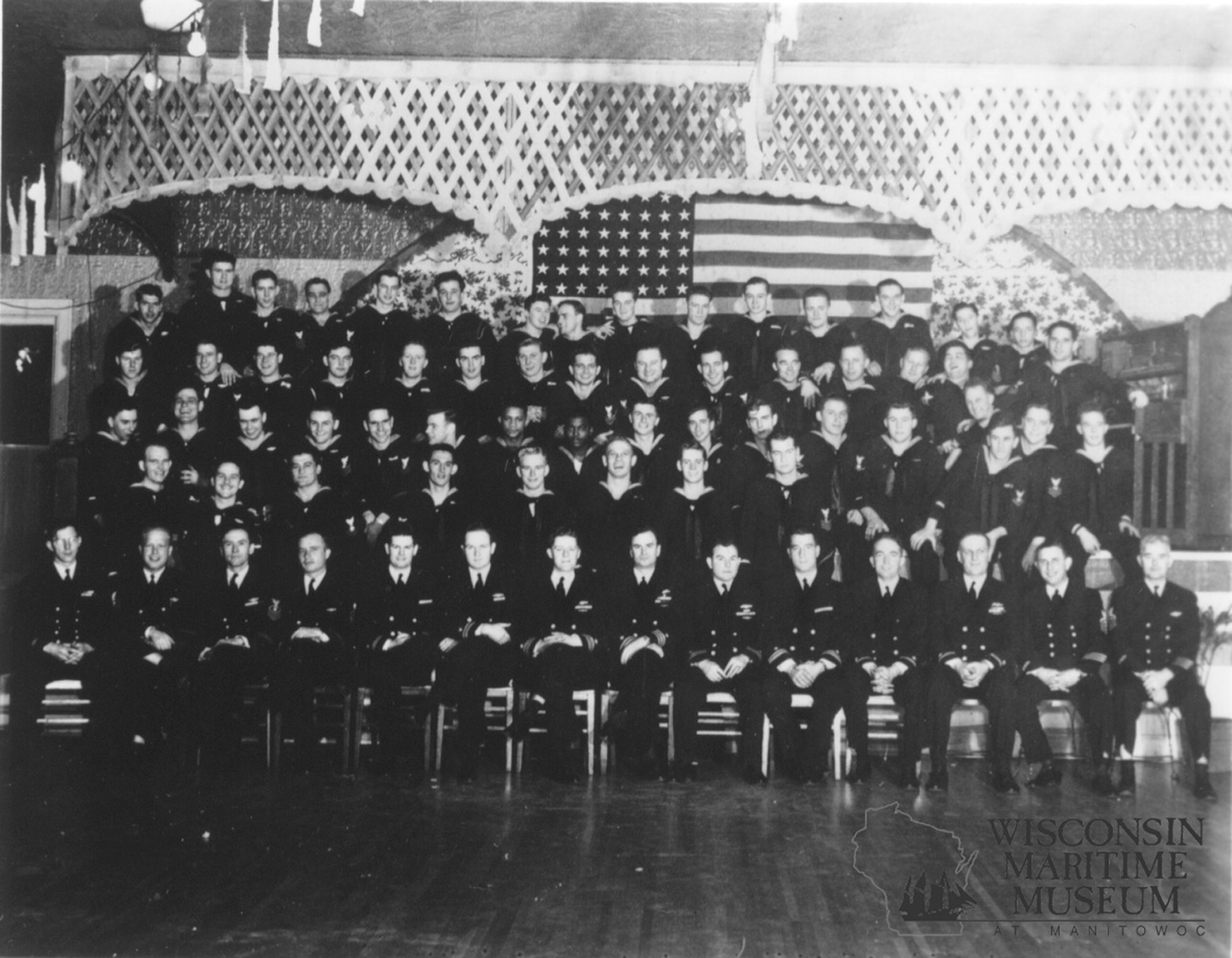 ![]() 0837413 | 435k | Crew of Loggerhead (SS-374) at their commissioning party on 9 February 1945. | Photo by Harry Berns, Official photographer of the Manitowoc Shipbuilding Co., Manitowoc, WI. This photo # P69-92-2, can be ordered from the Wisconsin Maritime Museum. |
