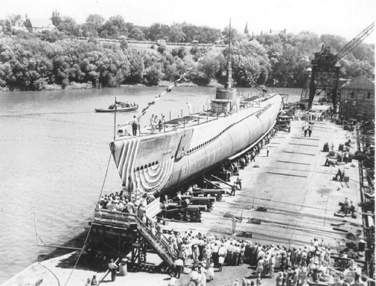![]() | 539k | With most of her launching timbers up, the Loggerhead (SS-374) is about to hit the waters as she starts her slide into the Manitowoc River at Manitowoc Shipbuilding Co., Manitowoc, WI., 13 August 1944. | Photo by Harry Berns, Official photographer of the Manitowoc Shipbuilding Co., Manitowoc, WI. Submitted by Larry Bohn, courtesy of the Wisconsin Maritime Museum, home of the Cobia (SS-245) | |