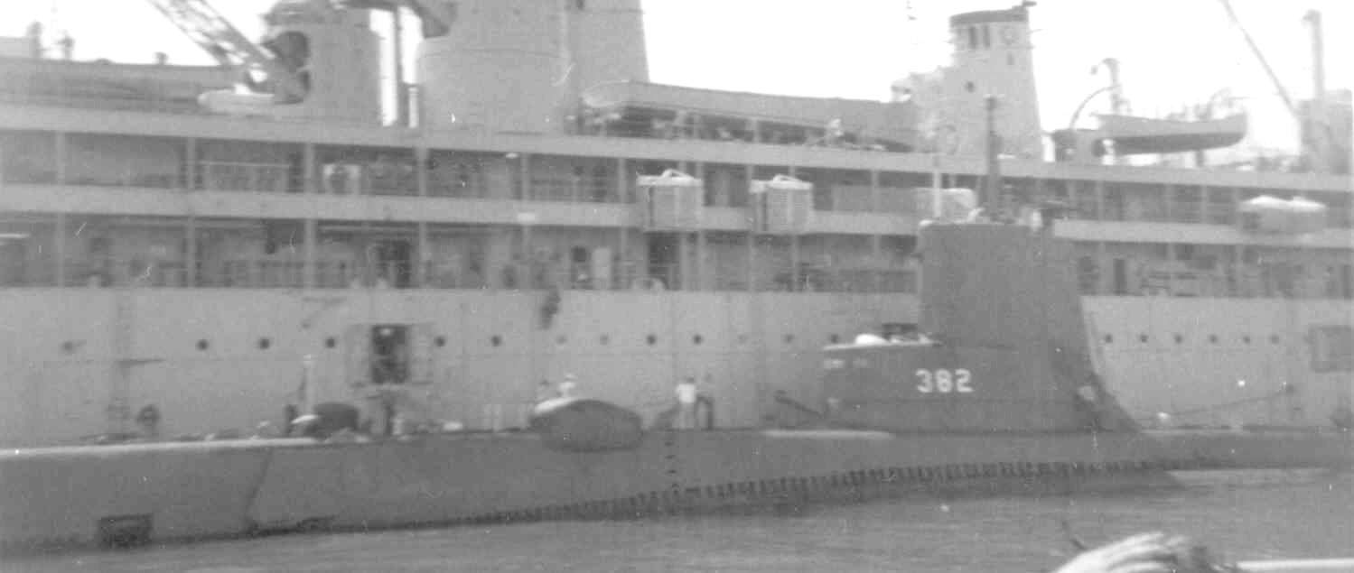 249k | Change of command at Subron 12 Key West Fla.in the 1960's aboard the Bushnell (AS-15). Barracuda (SST-3) upper right. Other boats there are Sea Cat (SS-399), Picuda (SS-382), Atule (SS-403), Sea Fox (SS-402), Threadfin (SS-410) & Chopper (SS-342). | Photo courtesy of John Hummel, (USN) retired. | |