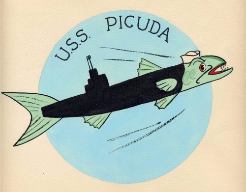 3.10k | Walt Disney drawing of the Picuda (SS-382). | Photo courtesy of Peter Joeseph Giannettino via his daughter Susan with the help of Ric Hedman. | |