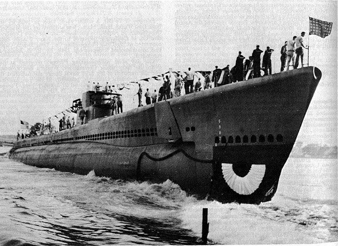 ![]() | 103k | The national ensign blows in the breeze as the Parche (SS-384) is launched at Portsmouth Navy Yard, Portsmouth, N.H. 24 July 1943. | USN photo courtesy of ussubvetsofwwii.org. | |