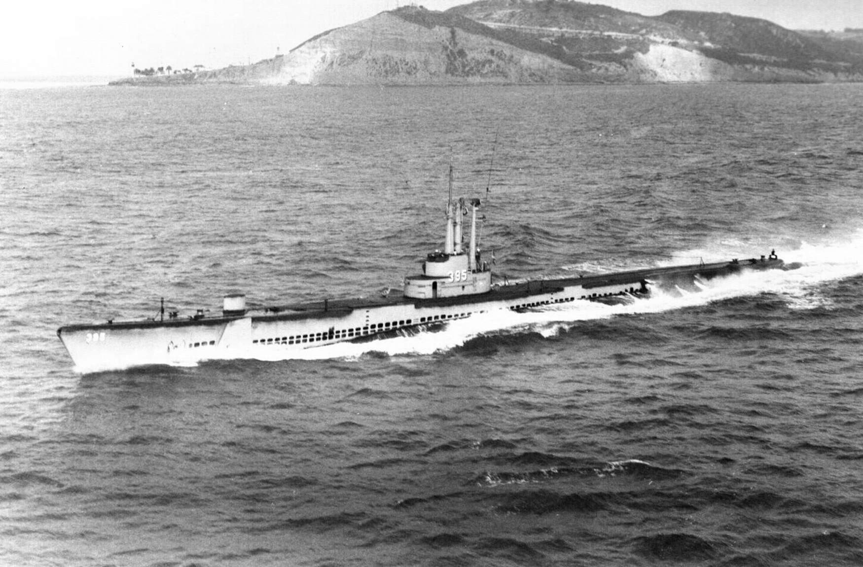 818k | Port side views of the Redfish (SS-395) underway, after her deck guns had been removed, circa 1950's. | USN photo courtesy of ussubvetsofwwii.org. | |