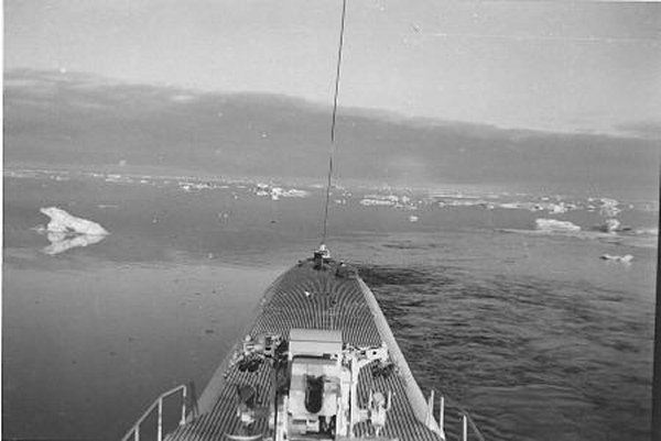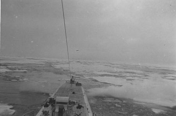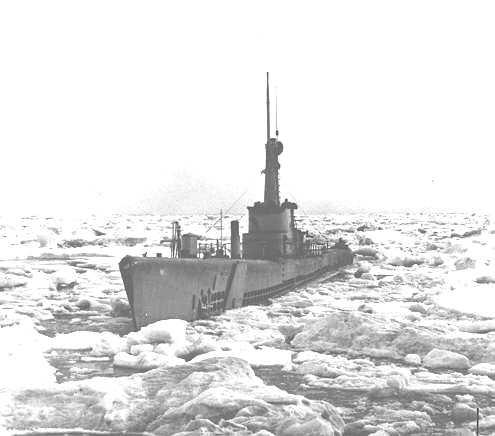 35k | Redfish (SS-395) in 1952 above the Arctic Circle dodging blocks of ice. | Photo courtesy of Robert Crow (USN retired). | |