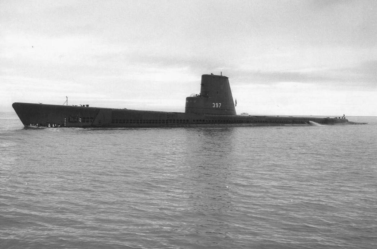 ![]() | 378k | Scabbardfish (SS-397) as the Greek submarine HS Triaina (S-86) underway in Maltese waters, in 1966. | Photo courtesy of A & J Pavia, courtesy of Robert Hurst. | |
