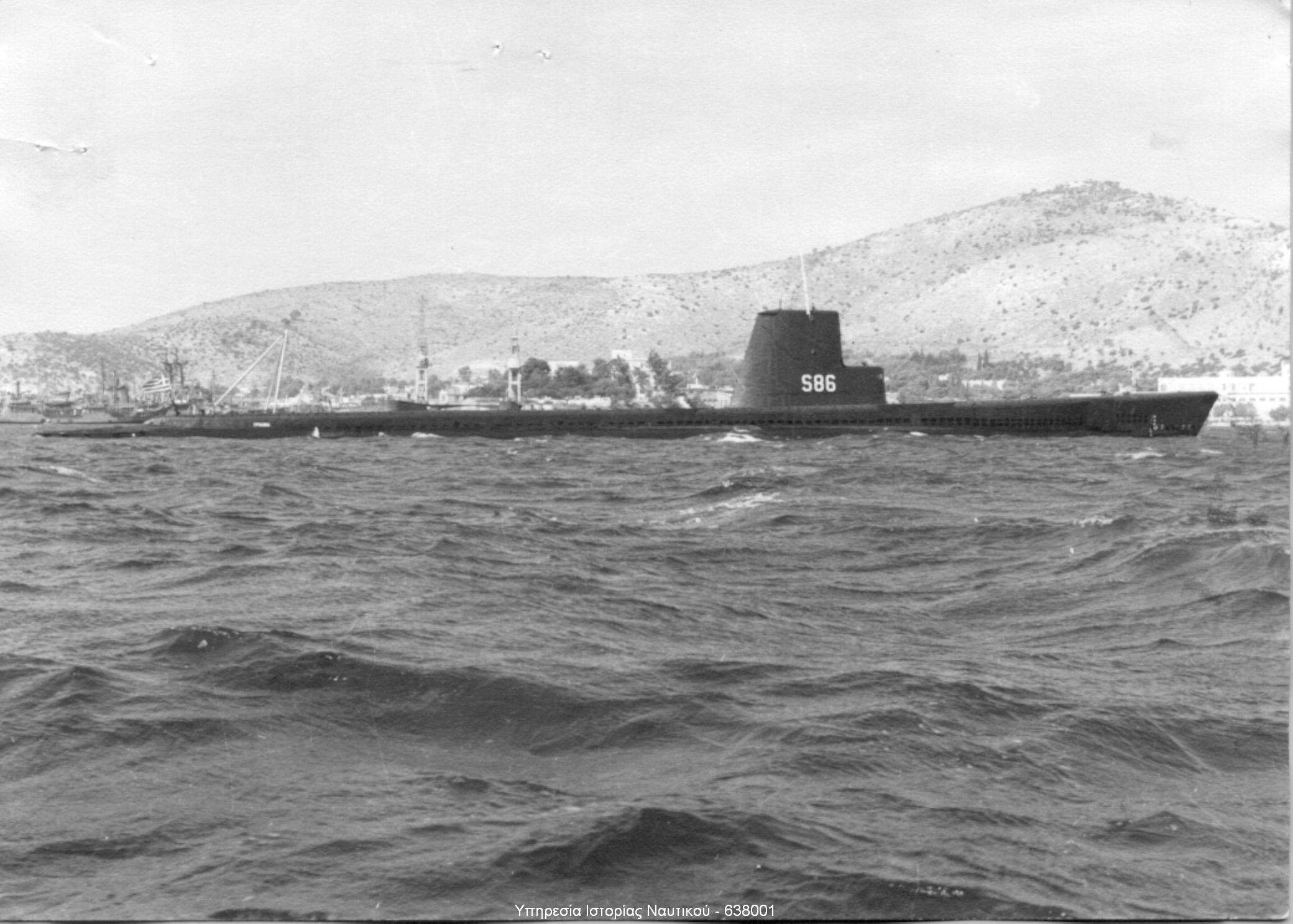![]() | 286k | HS Triaina (S-86), circa April 1976. | Official Hellenic Navy photo, courtesy of Tony Vrailas. | |