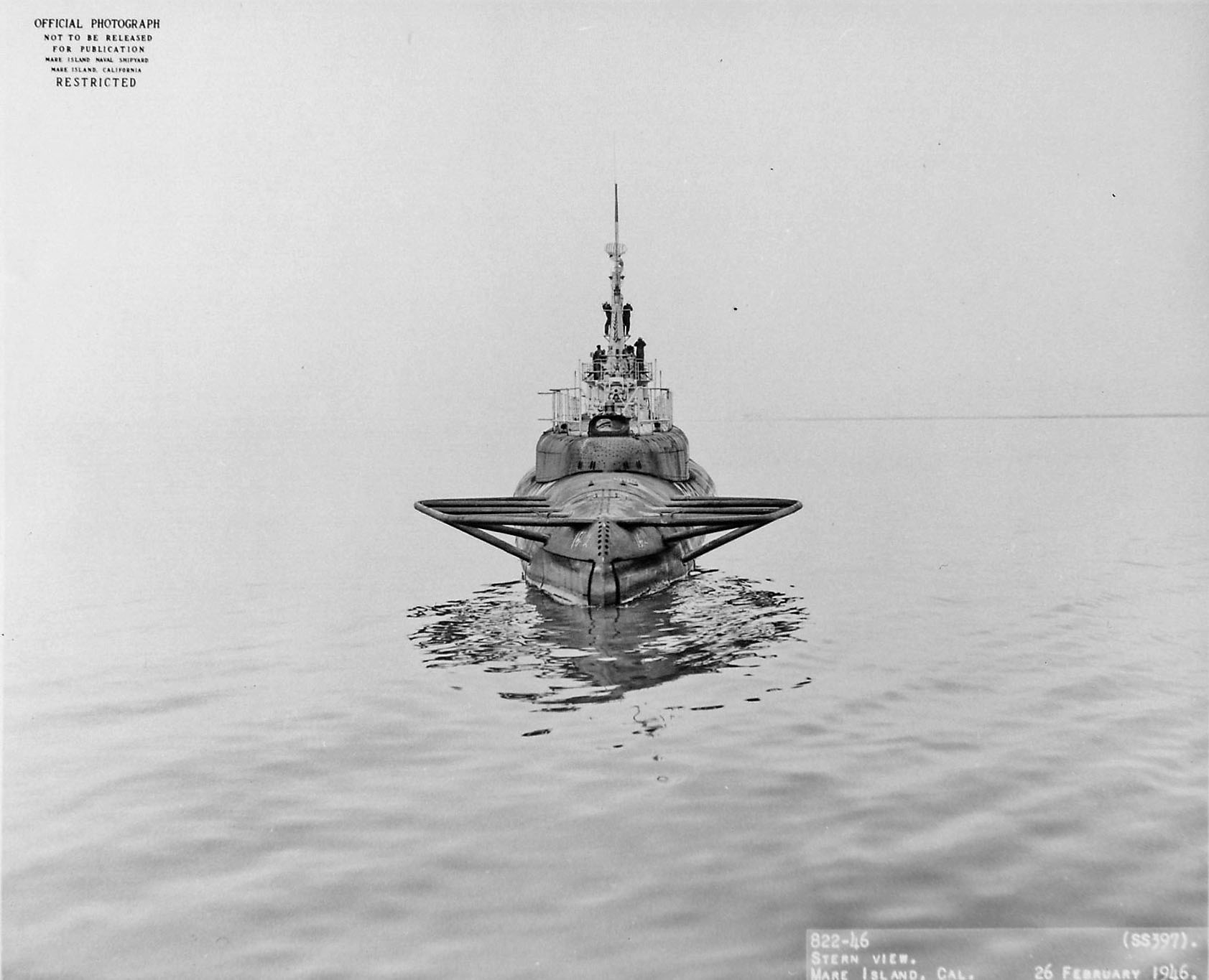 ![]() | 179k | Stern view of Scabbardfish (SS-397) off Mare Island on 26 February 1946. | USN photo # 822-46, courtesy of Darryl L. Baker. | |