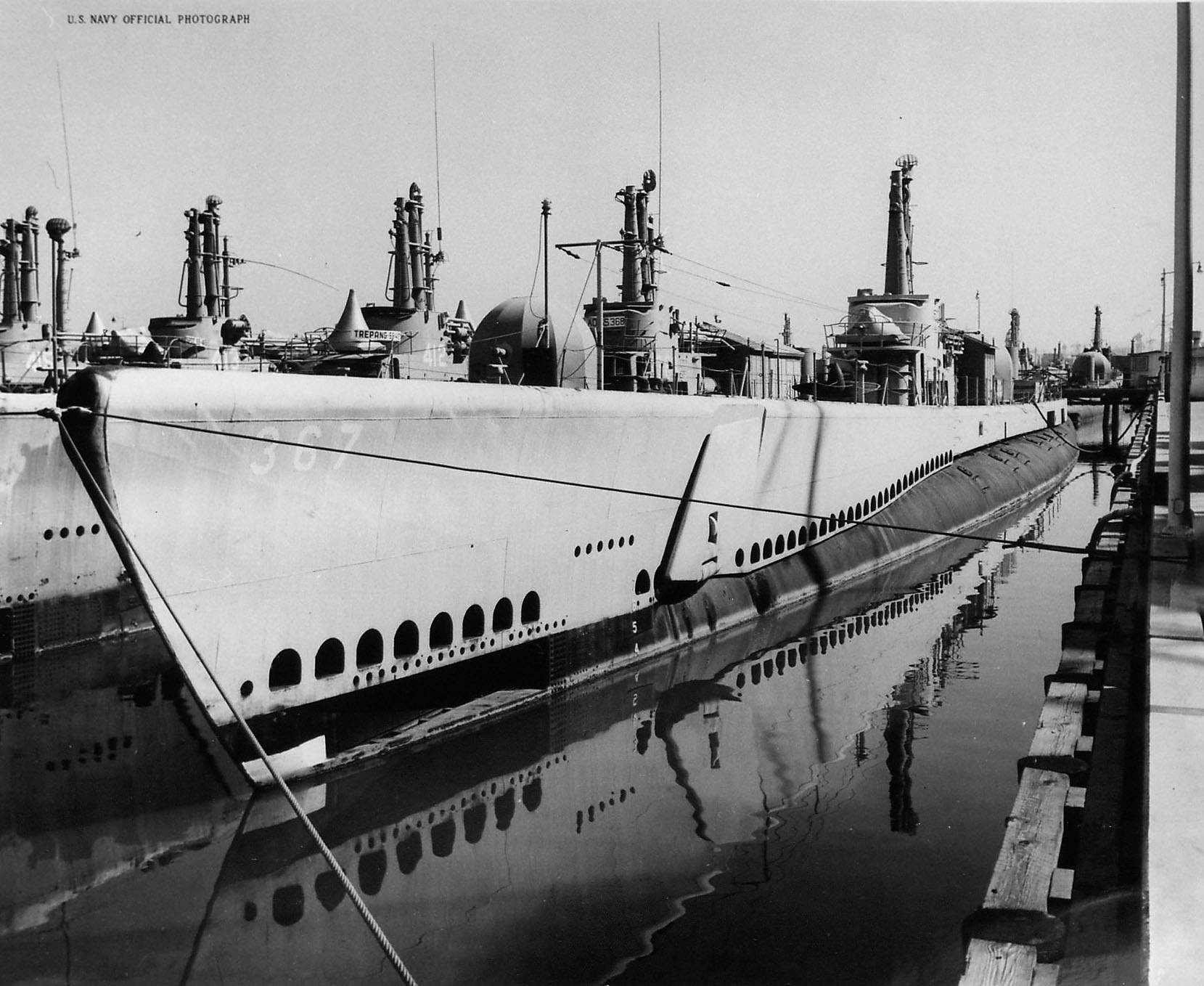 49k | Stickleback (SS-415), moored at Yokosuka, Japan, 1952. | Courtesy of Grant Riddle's submarinebaseph.com | |