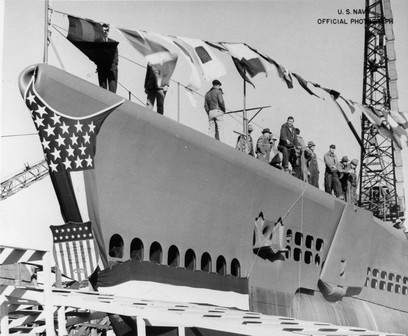 ![]() | 769k | Sponsor and party for Stickleback (SS-415) launching. | USN photo # 80-G-448215 from National Archives and Records Administration (NARA), College Park, Maryland, courtesy of Sean Hert | |