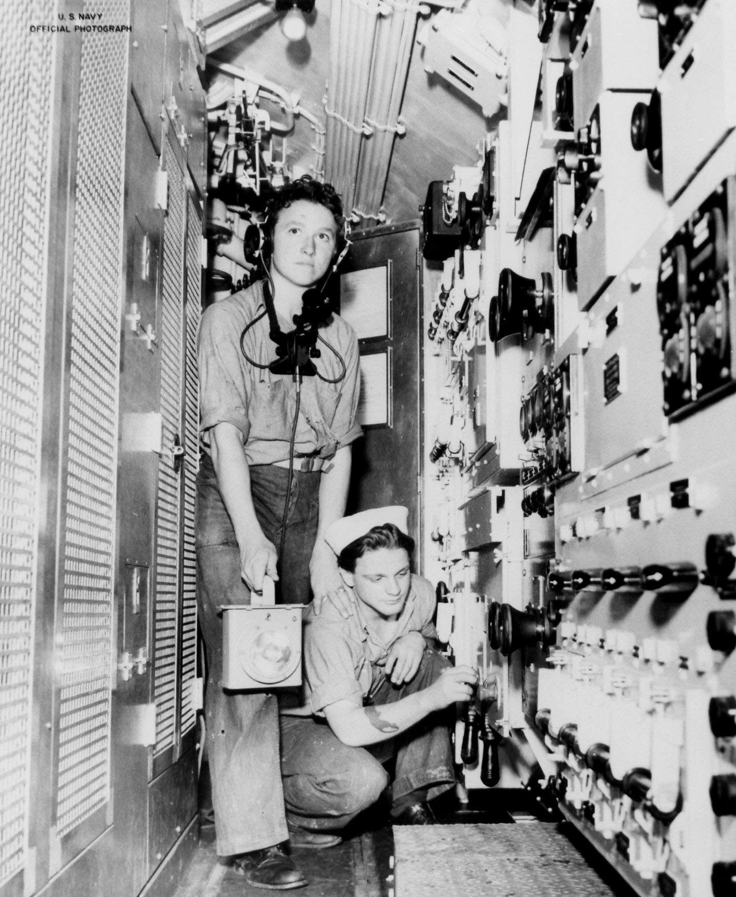 295k | Photo of starboard side of main control cubicle aboard Stickleback (SS-415) at Mare Island on 13 June 1945. | USN photo # 4466-45, courtesy of Darryl L. Baker. | |