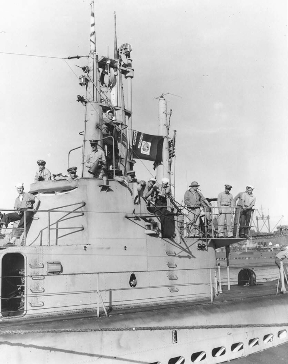 268k | Tench (SS-417) sports her WW II battleflag in harbor. | USN photo courtesy of Scott Koen & ussnewyork.com. | |