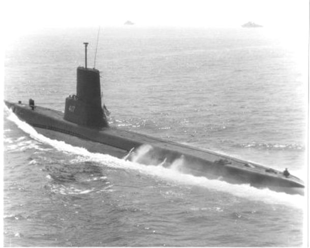 ![]() | 813k | Tench (SS-417) underway in 1966. | Photo courtesy of Robert Hurst. | |