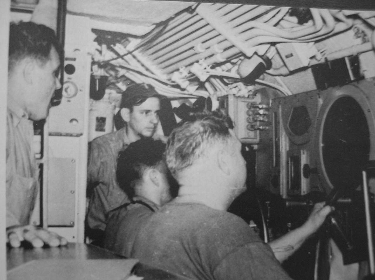 ![]() | 93k | Tench's (SS-417) control room, 1953. | Photo courtesy of John Hummel, (USN) retired. | |