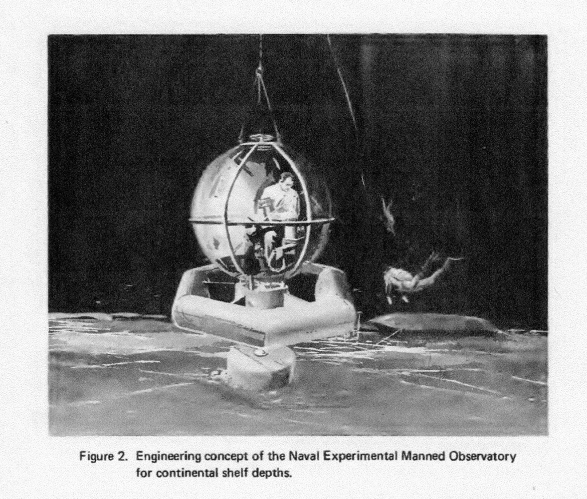 ![]() | 672k | NEMO in the depths. | NCEL Technical Report R676: Development of a Spherical Acrylic Plastic Pressure Hull for Hydrospace Application Courtesy of Darryl L. Baker. | |