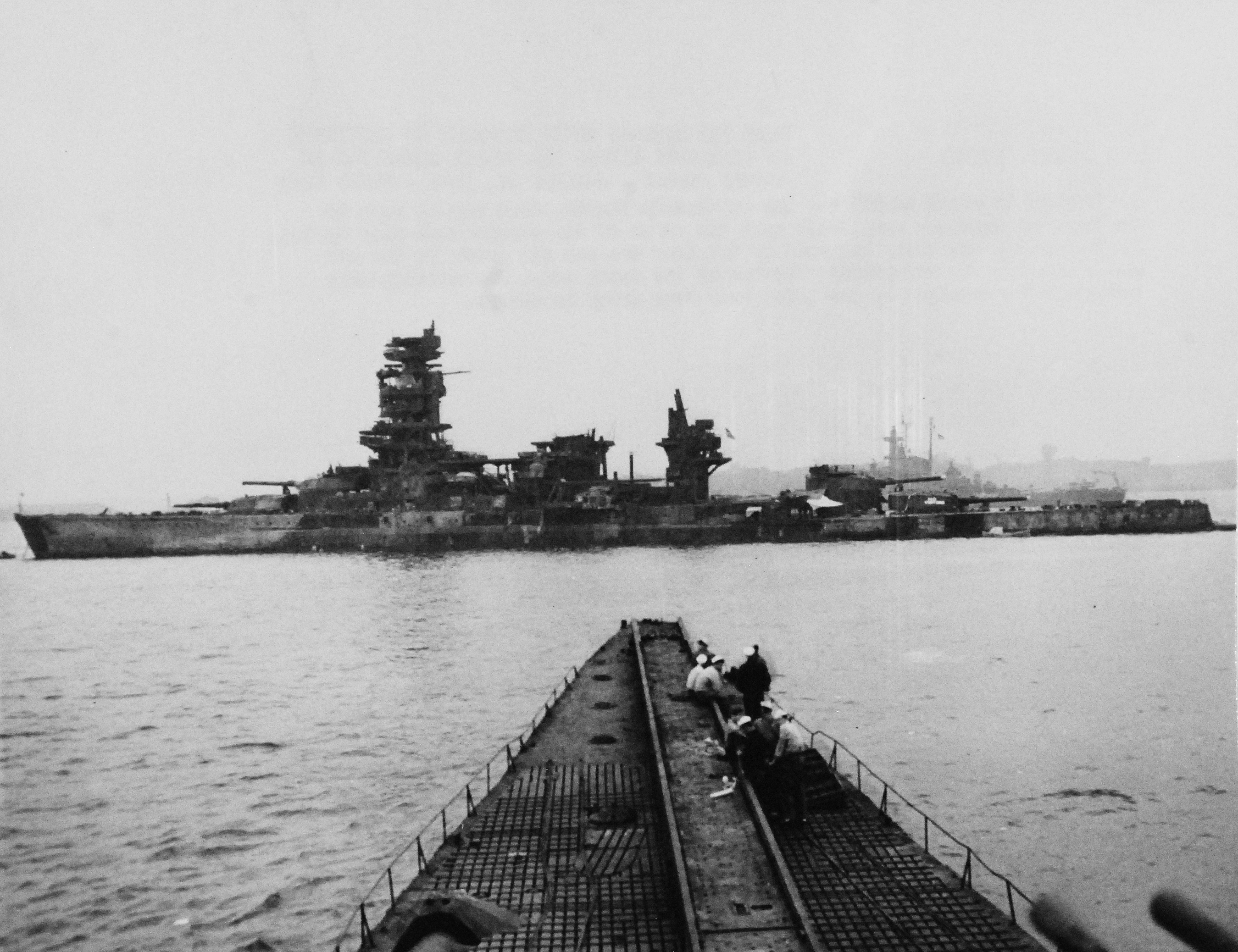 ![]() | 1.30k | Ships to be used for atomic bomb tests at Operations Crossroads, Bikini Atoll, Marshall Islands, 14 January 1946. Shown: Japanese battleship Nagato, port broadside. Note the sailors on the deck of the Japanese submarine. | Photo i.d. courtesy of John Hummel, USN (Retired). USN photograph # 80-G-701811, now in the collections of the National Archives courtesy of the National Museum of the U.S. Navy, via flickr.com. |