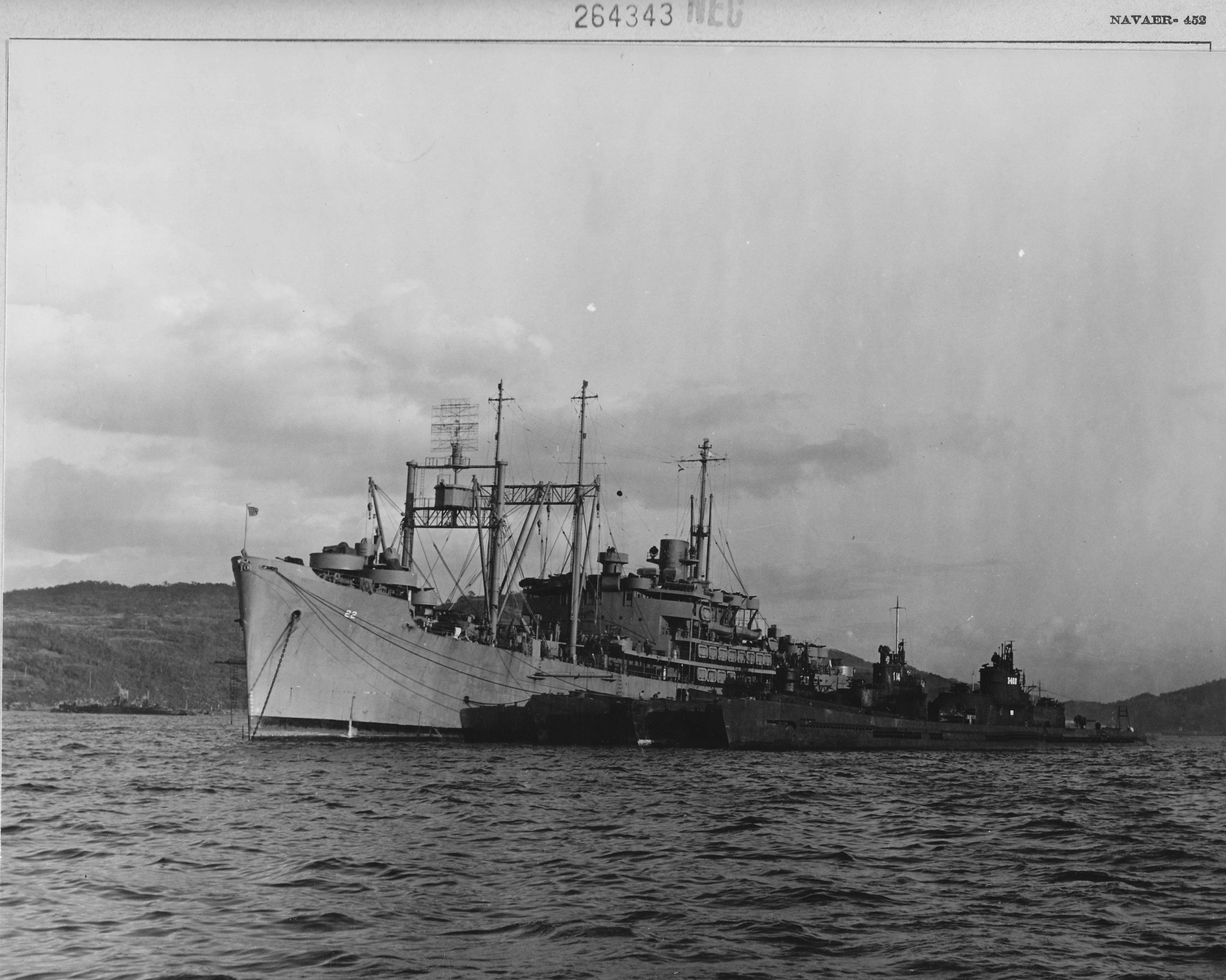 ![]() | 289k | I-14 & I-400 alongside Proteus (AS-19) in Tokyo Bay, September 1945. | Photo courtesy of John Hummel, (USN) retired. | |