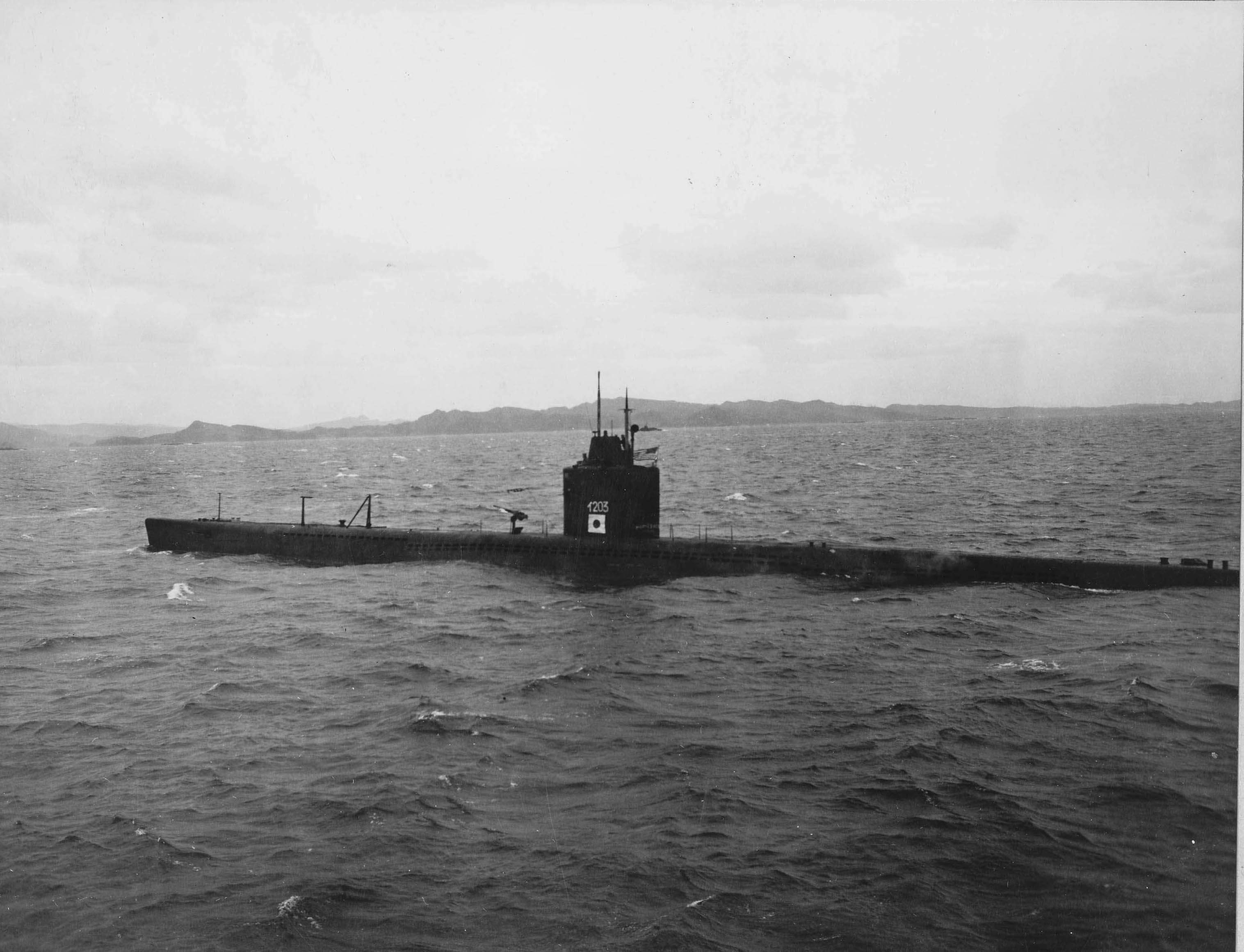 | 396k | I-203 as seen from the Euryale (AS-22), 17 December 1945. |