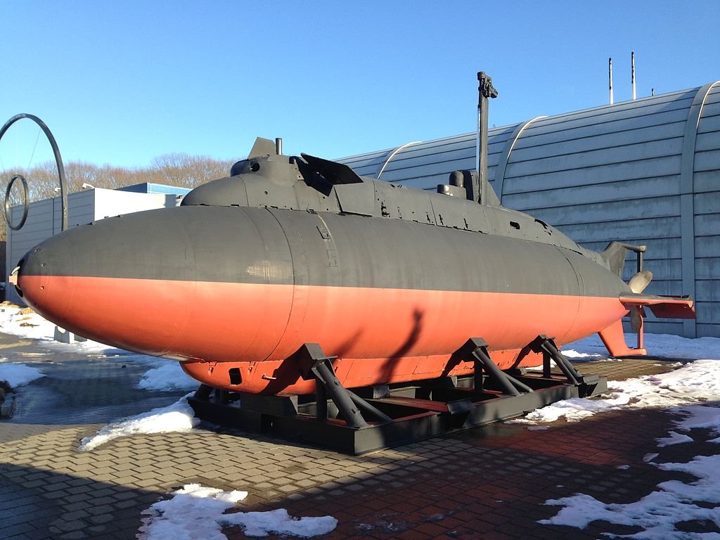 167k | Midget submarine X-1, cruising on surface, October 1955. | Photographer: Grey Villet, courtesy of life.time. | |