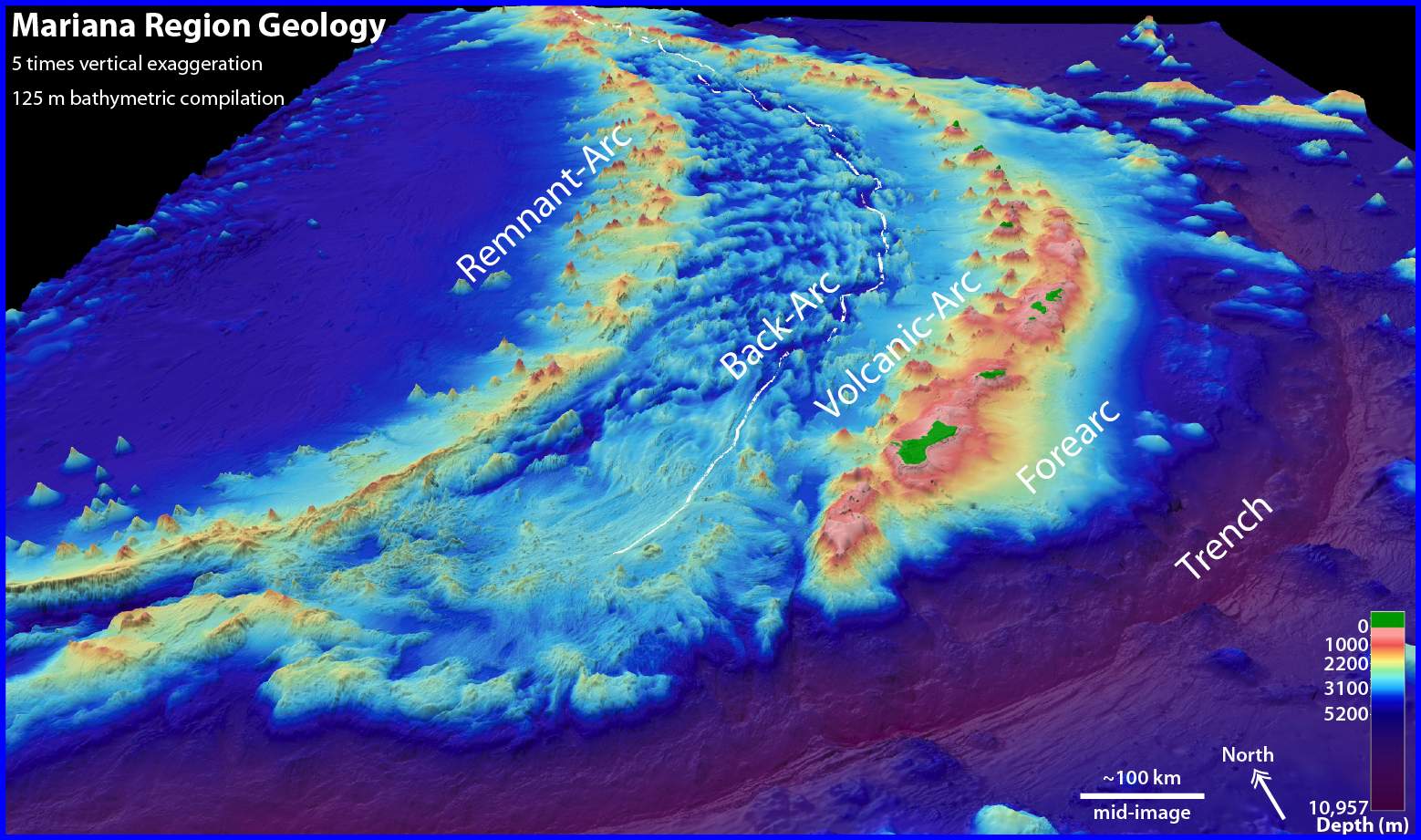 188k | Oblique 3D-view of the Mariana region with the seafloor colored according to depth. | Photo from oceanexplorer.noaa.gov | |