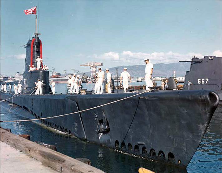 ![]() | 48k | Carbonero (SS-337) about to tie up inboard of the Gudgeon (SS-567) at Pearl Harbor, circa 1963. | USN photo courtesy of ussubvetsofwwii.org | |
