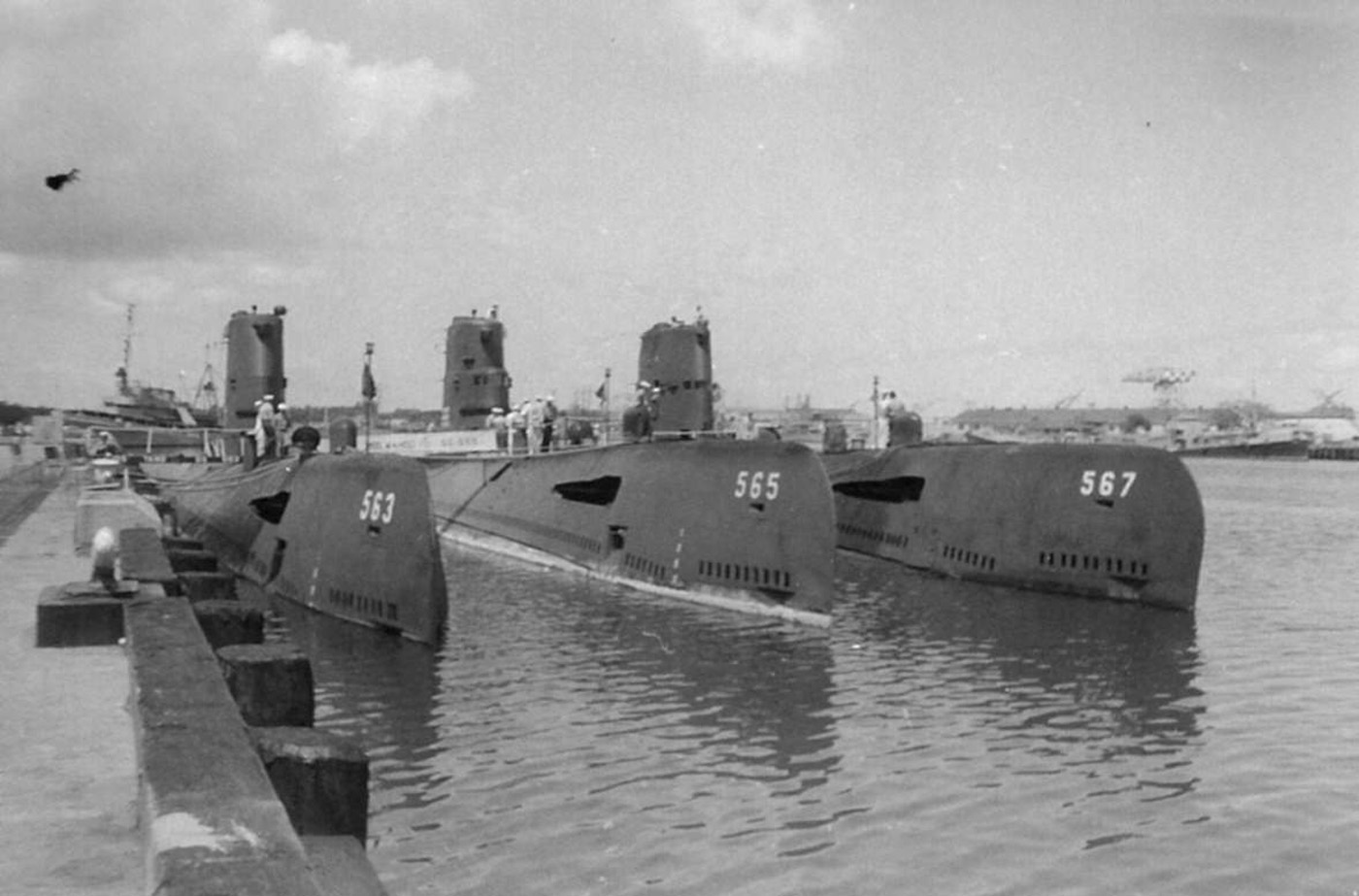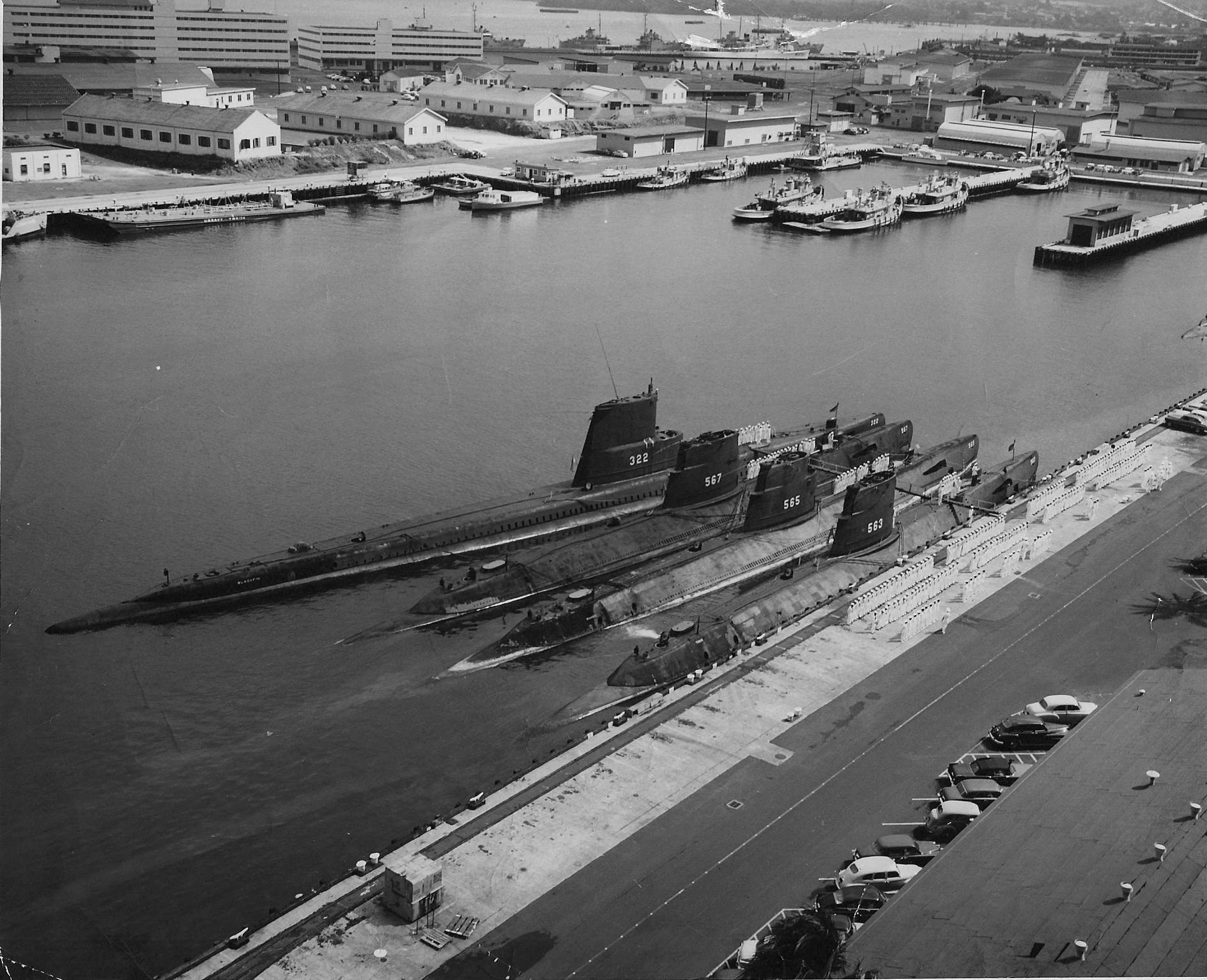 193k | Tang (SS-563),Wahoo (SS-565) & Gudgeon (SS-567) at Pearl Harbor. I believe this photo may be from late ‘50s to mid ‘60s. | Courtesy of Rick Rowe & Ed Kalinosk via Dan Craw ETC/SS Ret. Text i.d. via STS2(SS) Ed Misik. |