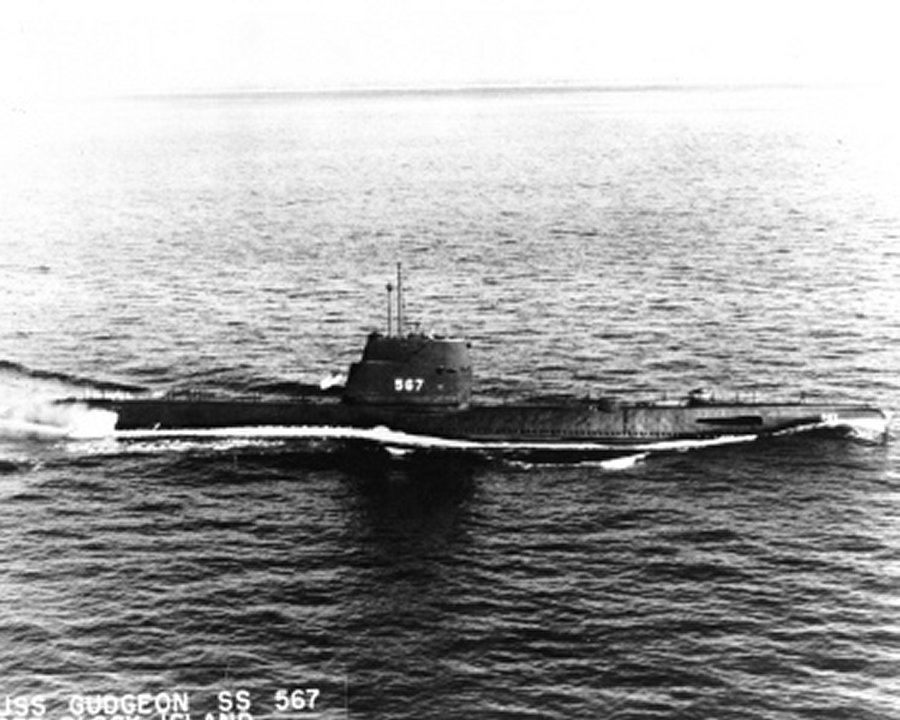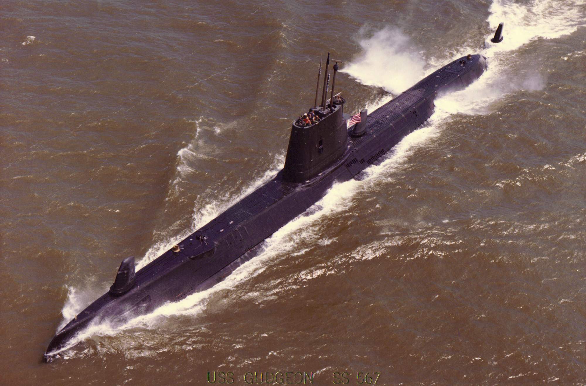 1.41k | Port side view of the Gudgeon (SS-567) underway, newer vesion below. | USN photo courtesy of Scott Koen & ussnewyork.com. | |