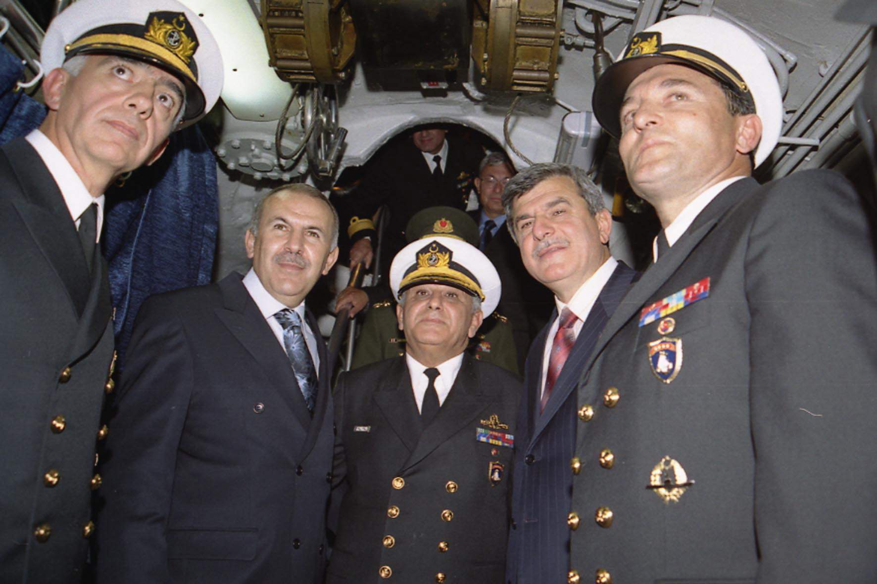 155k | From right to left are: RADM. A. Can Erenoglu, Commander of Turkish Submarine Fleet, Mr. Ibrahim Karaosmanoglu, Mayor of Kocaeli, Admiral Yener Karahanoglu, Fleet Commander Mr. Erdal Ata, Governor of Kocaeli, Captain(Navy) Turgay Guclu, Submarine Division Commander, aboard the ex Gudgeon (SS-567), Turkish submarine TNS Hizirreis (S-342), currently in the city of Izmit, which is 100 Km. east of Istanbul, Spring 2005. | Turkish Navy Photo courtesy of RADM. Can Erenoglu, Commander of Turkish Submarine Fleet. | |
