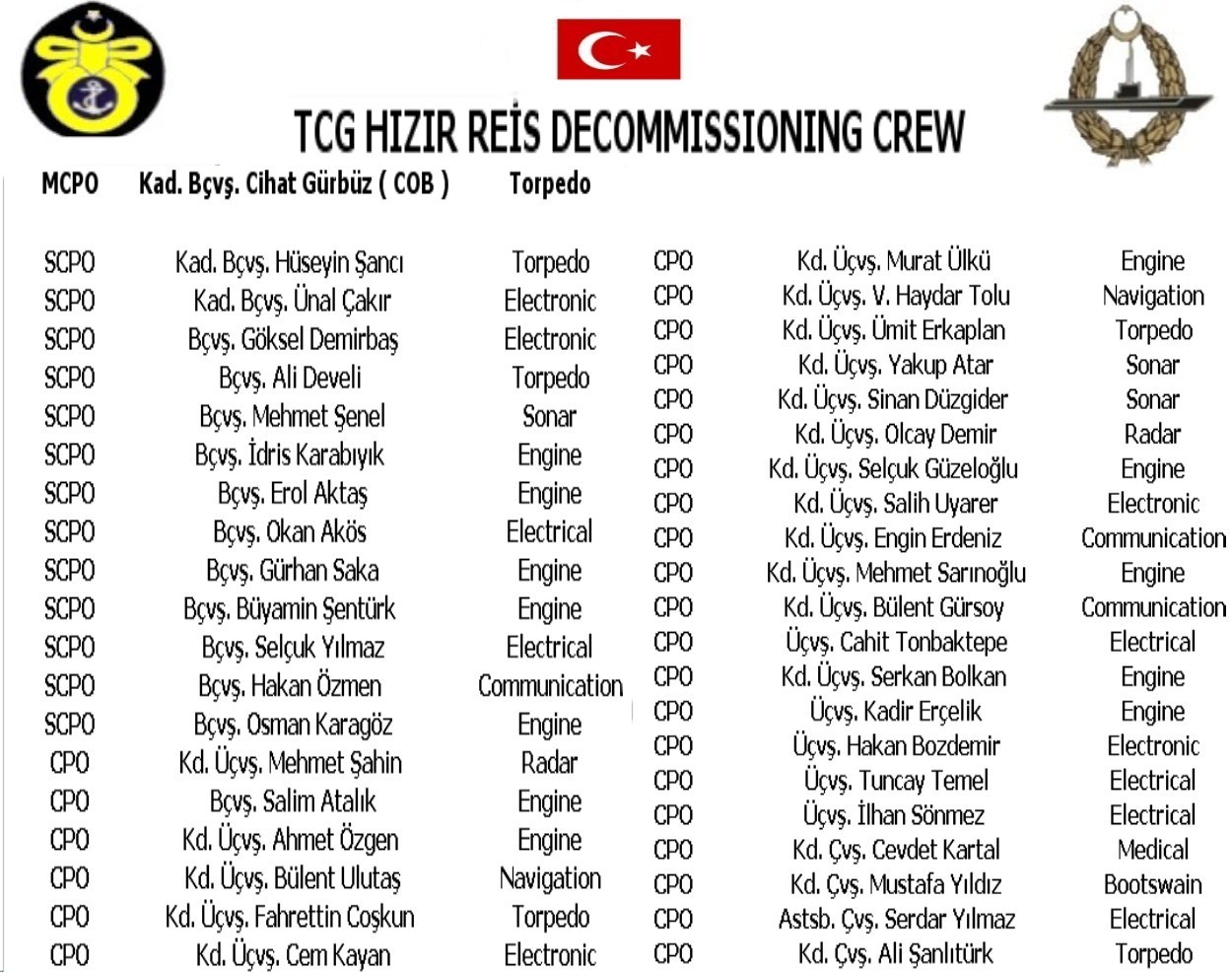 280k | Decommissioning crew of the Hizirreis (S-342). | Photo courtesy of Y.M.Umar,CPO (Ret.),Turkish Navy. | |