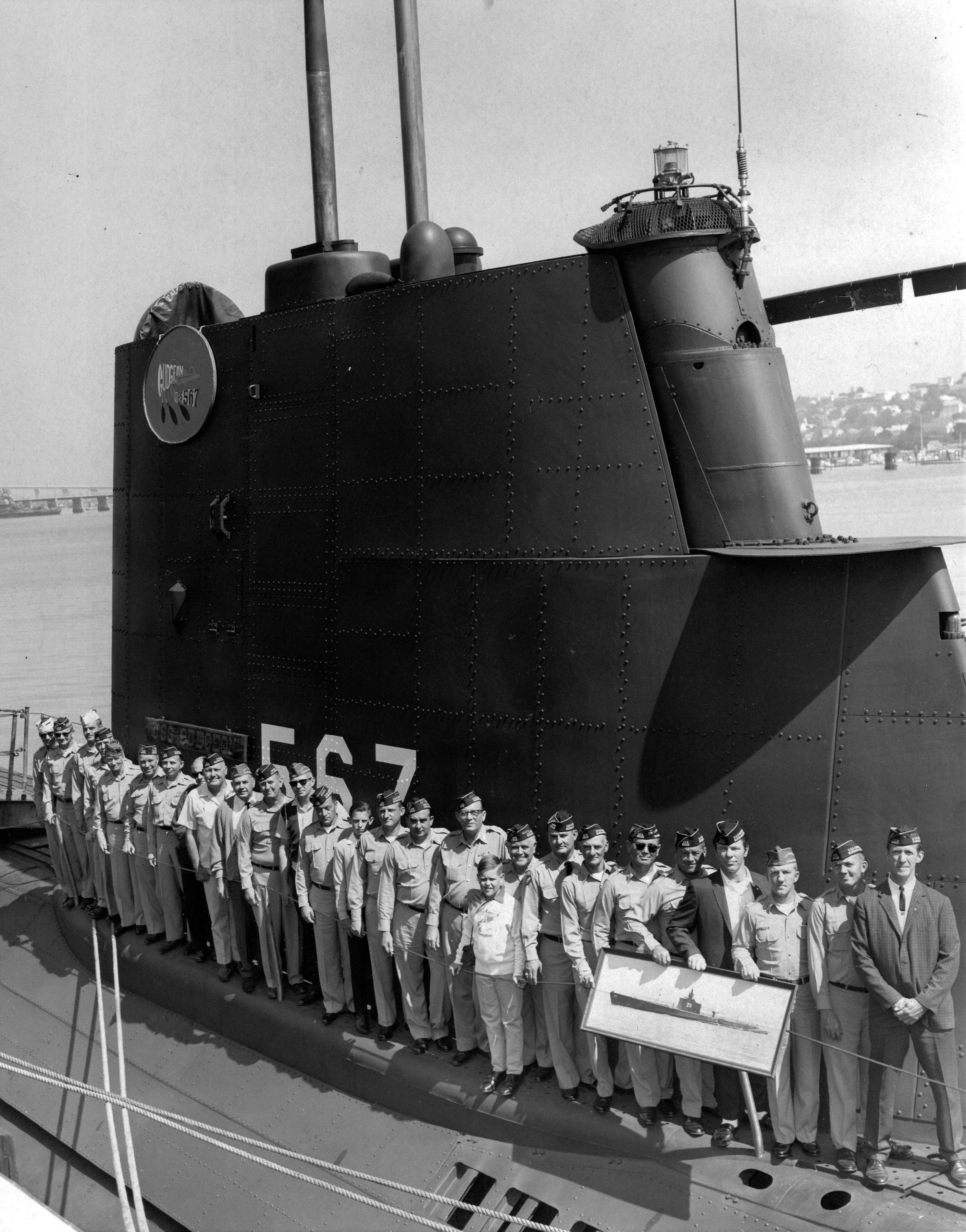 993k | Photo of Veterans of Foreign Wars Ship 8310 visiting the Gudgeon (SS-567) at Mare Island on 27 August 1967. | Photo courtesy of the Vallejo Naval and Historical Museum via Darryl L. Baker. | |