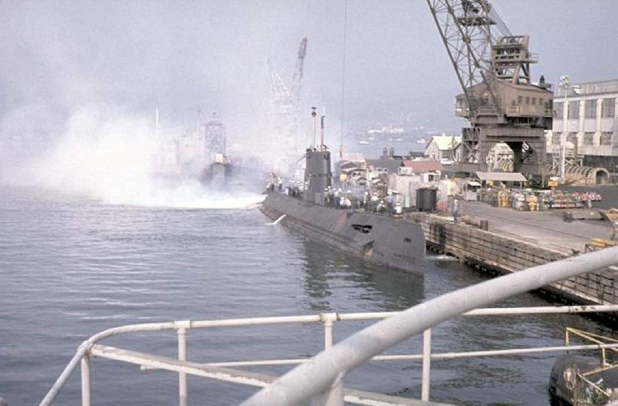 1.39k | Returning Gudgeon (SS-567) from Westpac, May 1969. | USN photo courtesy of Scott Koen & ussnewyork.com. | |