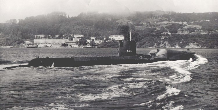 ![]() | 68k | Grayback (SSG-574), in San Francisco, Bay, circa 1960. | USN photo, courtesy of George M. Arnold. | |