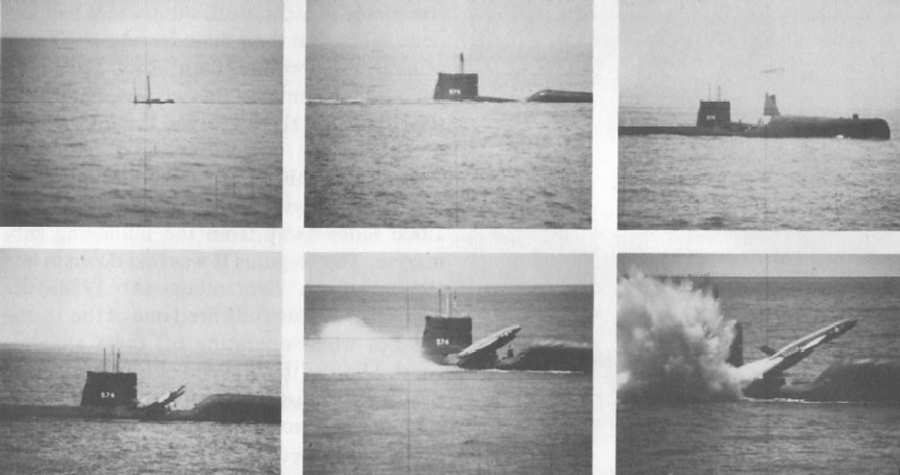 ![]() | 103k | This is a periscope's view of the Grayback (SSG-574) surfacing and launching a Regulus 1 missile. The total surface-to-launch sequence was about eight seconds. | USN photo courtesy of The American Submarine, by Norman Polmar & submitted by Robert Hurst. | |