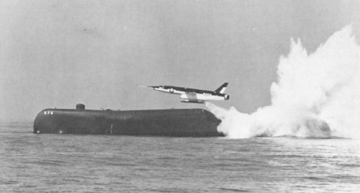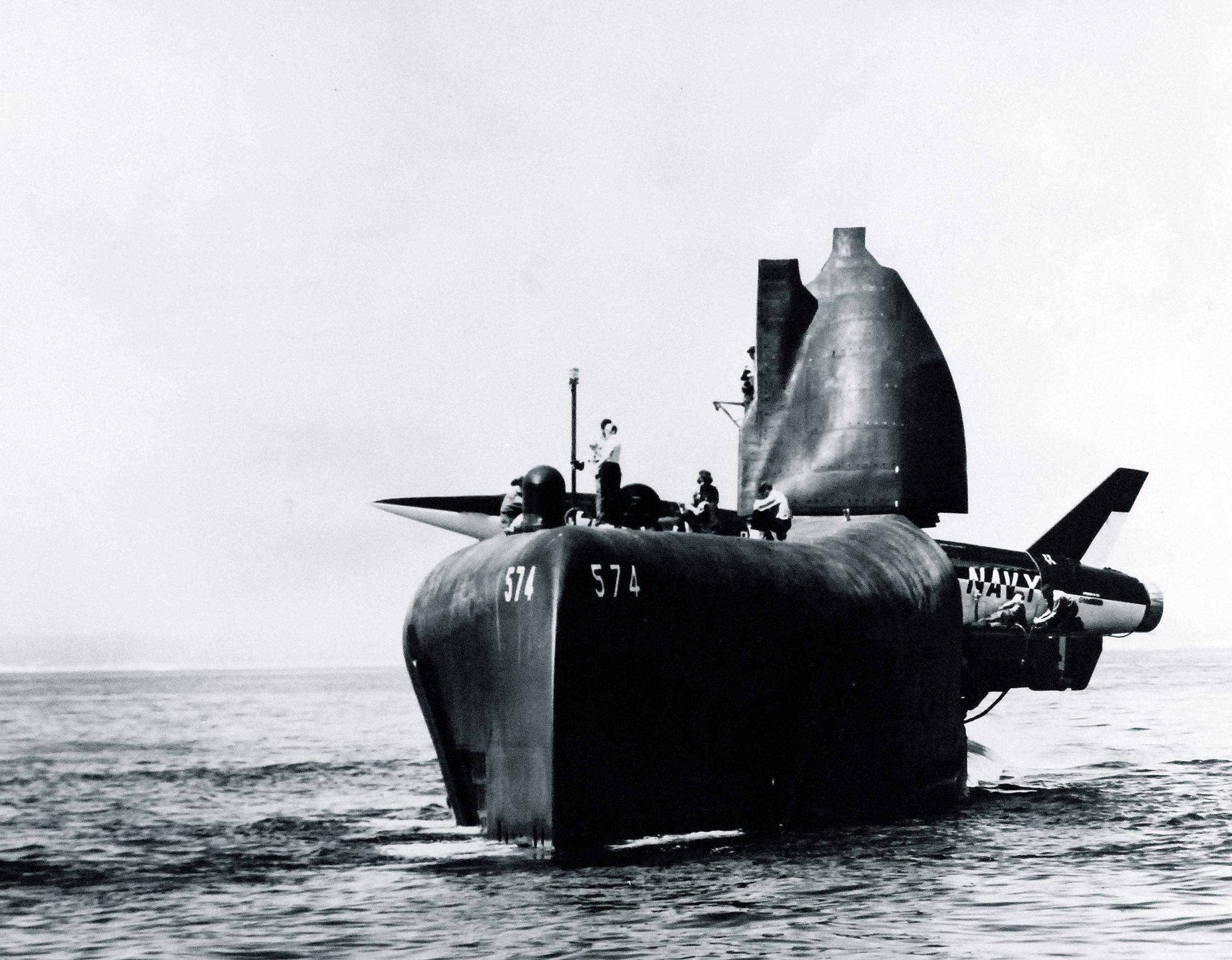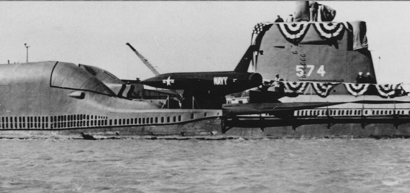 ![]() | 3.53k | The first Regulus II Missile to be fired from a submarine is moved into its hangar on deck of Grayback (SSG-574) in preparation for firing. | USN photo # USN 710243, courtesy of the National Museum of the U.S. Navy, via flickr.com. | |