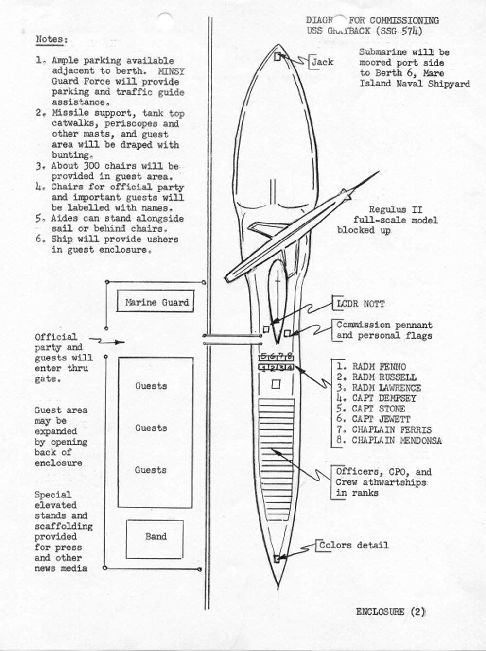 ![]() | 117k | This is the "Diagram for commissioning Grayback (SSG-574)" at Mare Island on 7 March 1958. | USN photo courtesy of Darryl L. Baker. | |
