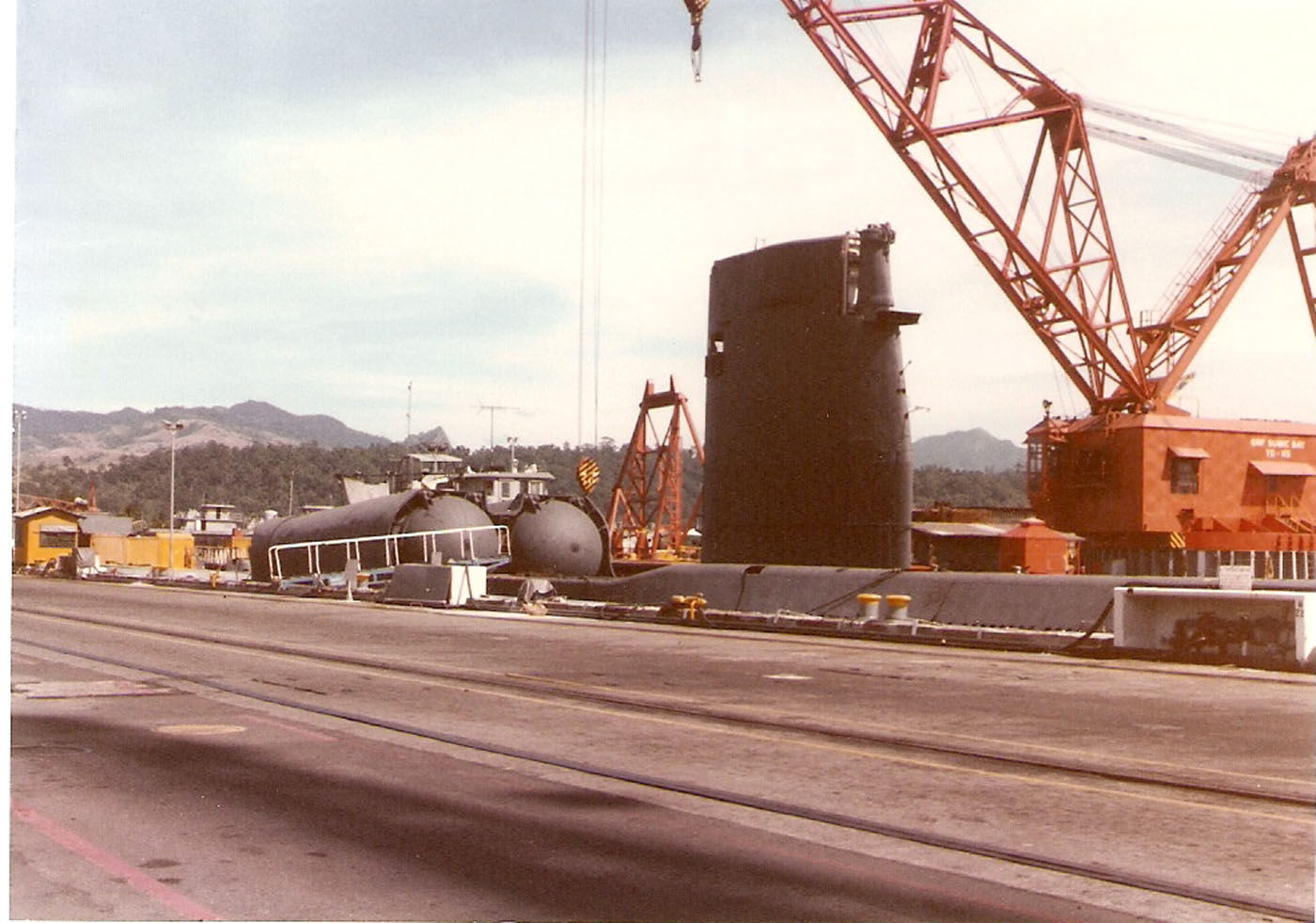 ![]() | 213k | The Grayback (LPSS-574) in April 1985 as she sat tied up at SRF Subic Bay, RP. View from the Pogy (SSN-647), which had made a port visit to the Philippines while on Westpac. | Photo courtesy of John MacKay. | |