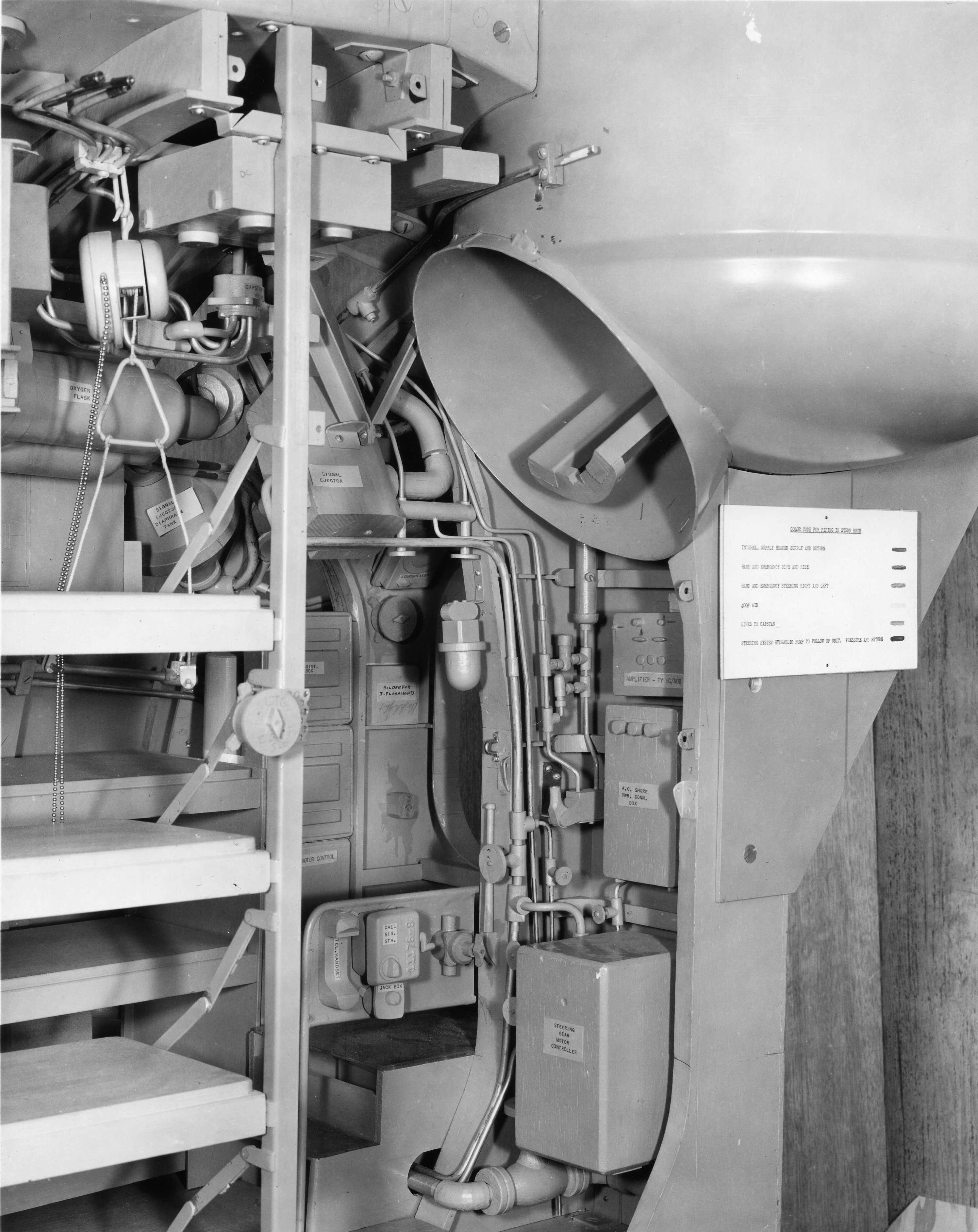 ![]() | 775k | After torpedo room port side frame 99 to 106 of Grayback (SSG-574) taken at Mare Island in August 1956. | USN photo # 30580-8-56 courtesy of Darryl L. Baker. | |