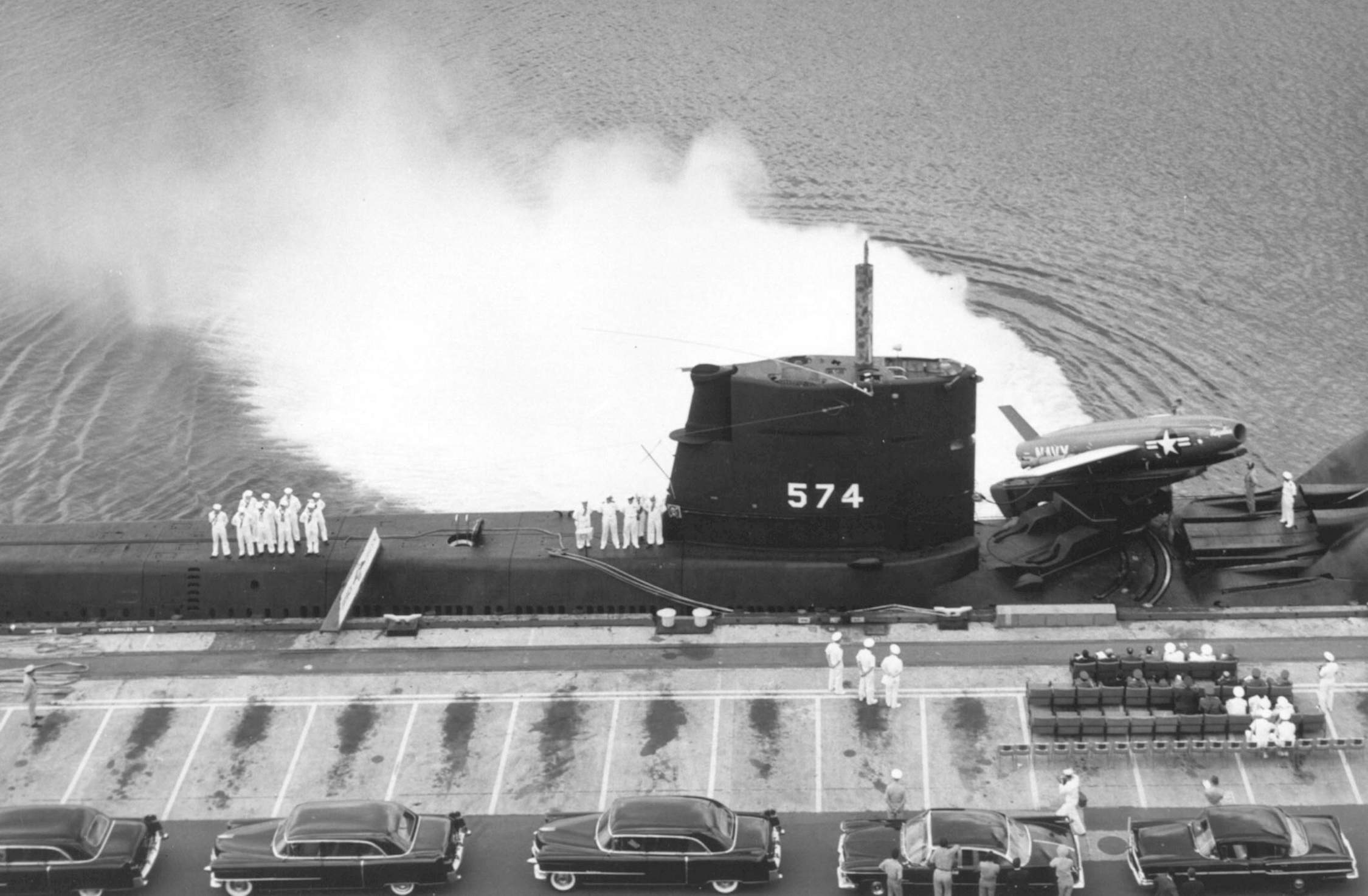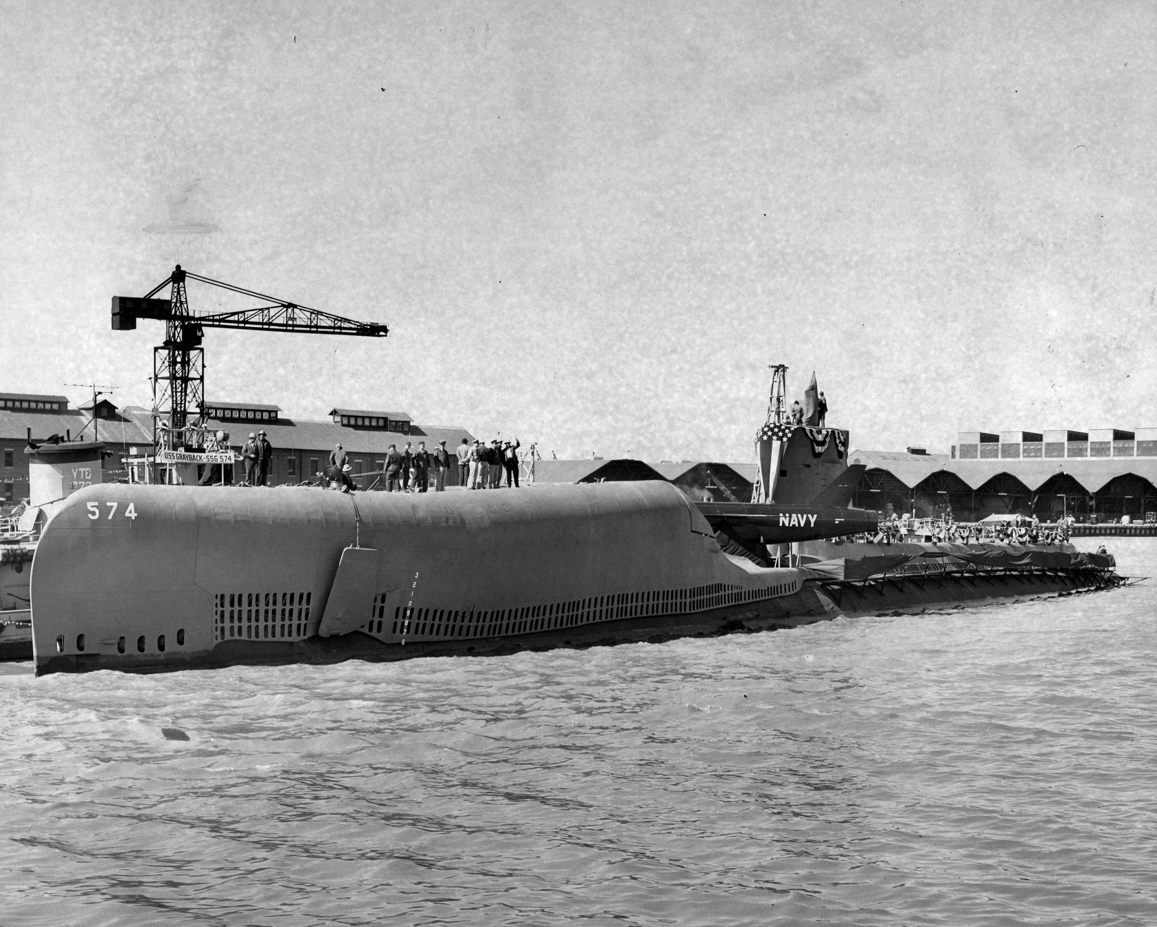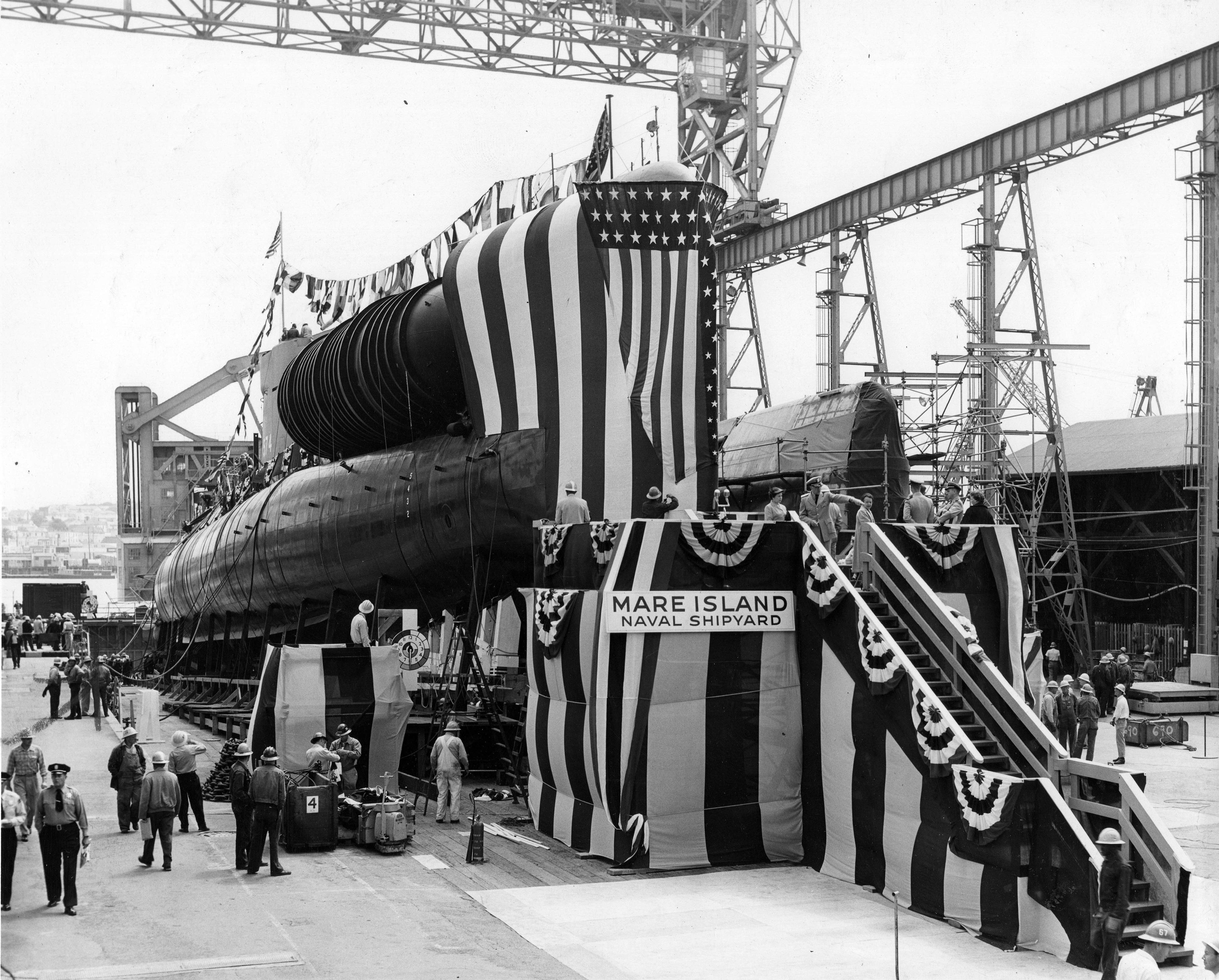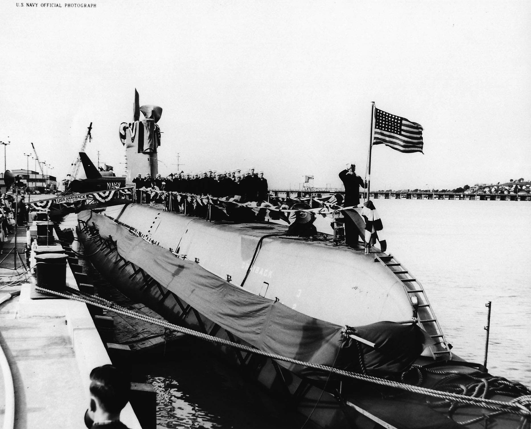 ![]() | 2.54k | A view of the commissioning ceremonies of the Grayback (SSG-574) at Mare Island on 7 March 1958. | USN photo # 38414-3-58 TH, courtesy of Vallejo Naval and Historical Museum via Darryl L. Baker. | |