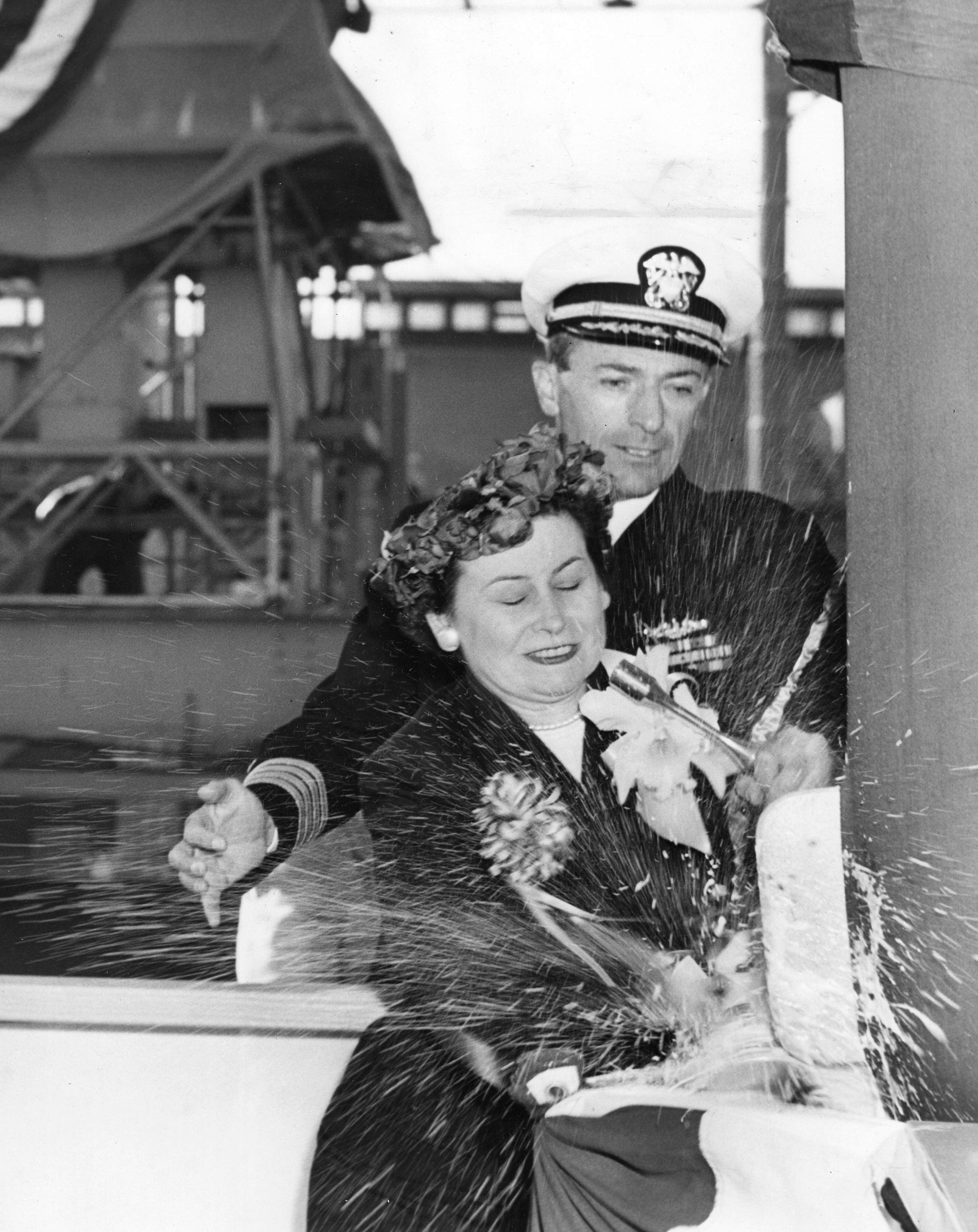 ![]() | 1.60k | Mrs. J. A. Moore (Sponsor) is assisted by Capt. E. J. Fahy (Shipyard Production Officer) christen the Grayback (SSG-574) at Mare Island on 2 July 1957. | USN photo # 35044-7-57 TH, courtesy of Vallejo Naval and Historical Museum via Darryl L. Baker. | |