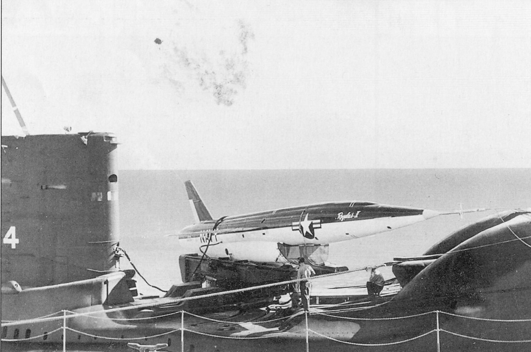 ![]() | 515k | Mockup of a Regulus II being prepared for launching on Grayback (SSG-574) taken at Mare Island in May 1957. | USN photo # 34182-5-57, courtesy of Darryl L. Baker. | |