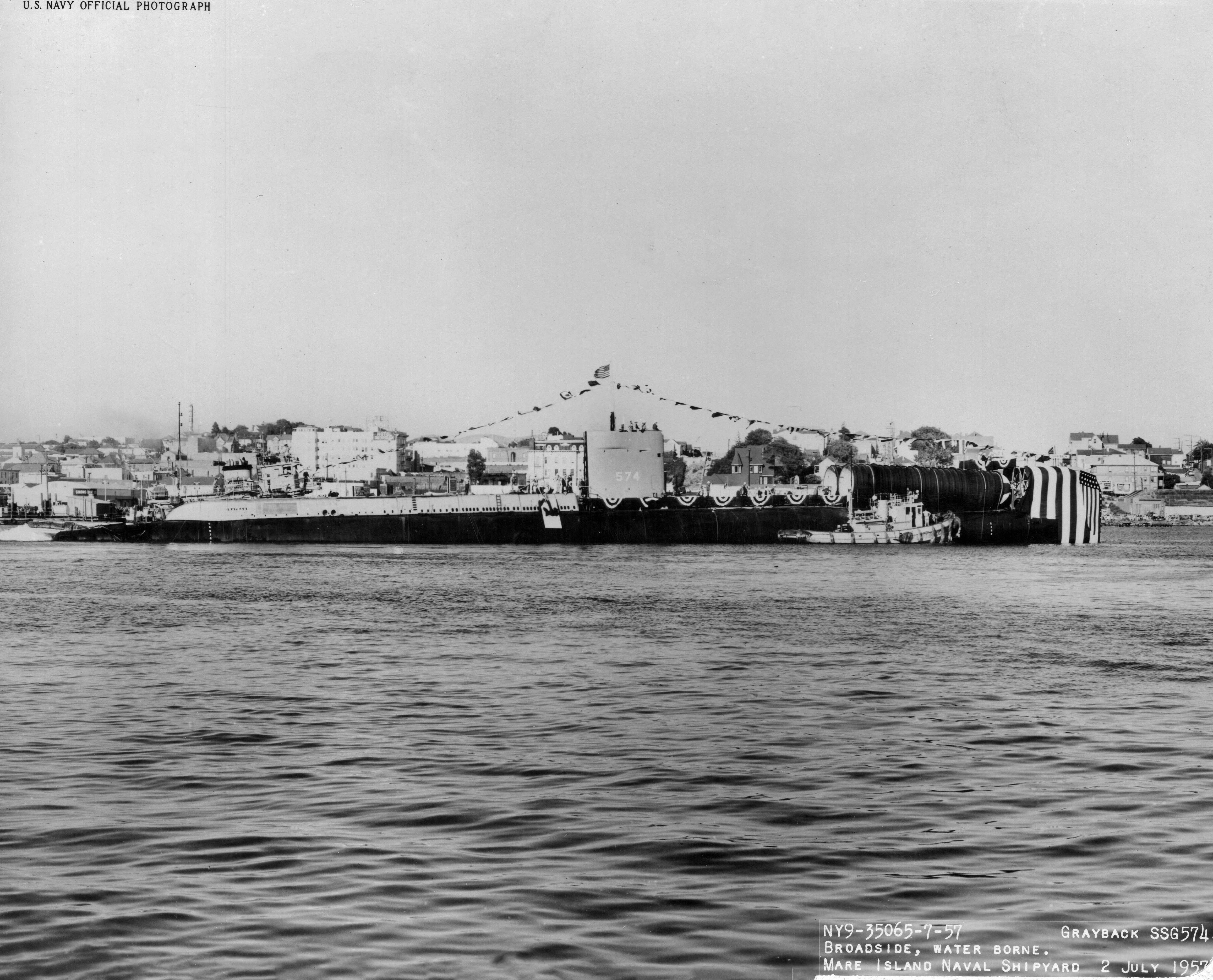 ![]() | 2.30k | Grayback (SSG-574) being moved to her commissioning berth at Mare Island on 7 March 1958. | USN photo # 38408-3-58 TH, courtesy of Vallejo Naval and Historical Museum via Darryl L. Baker. | |