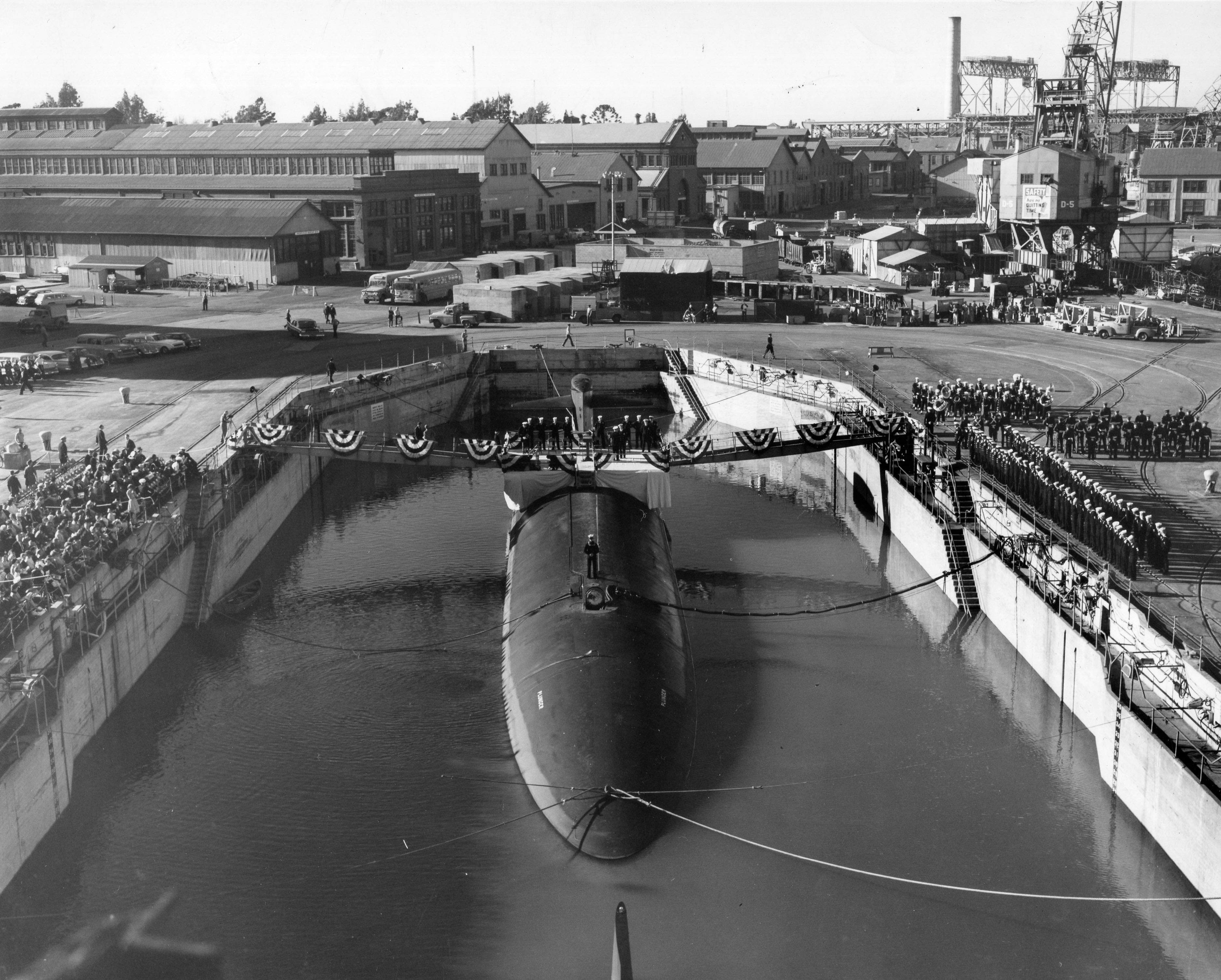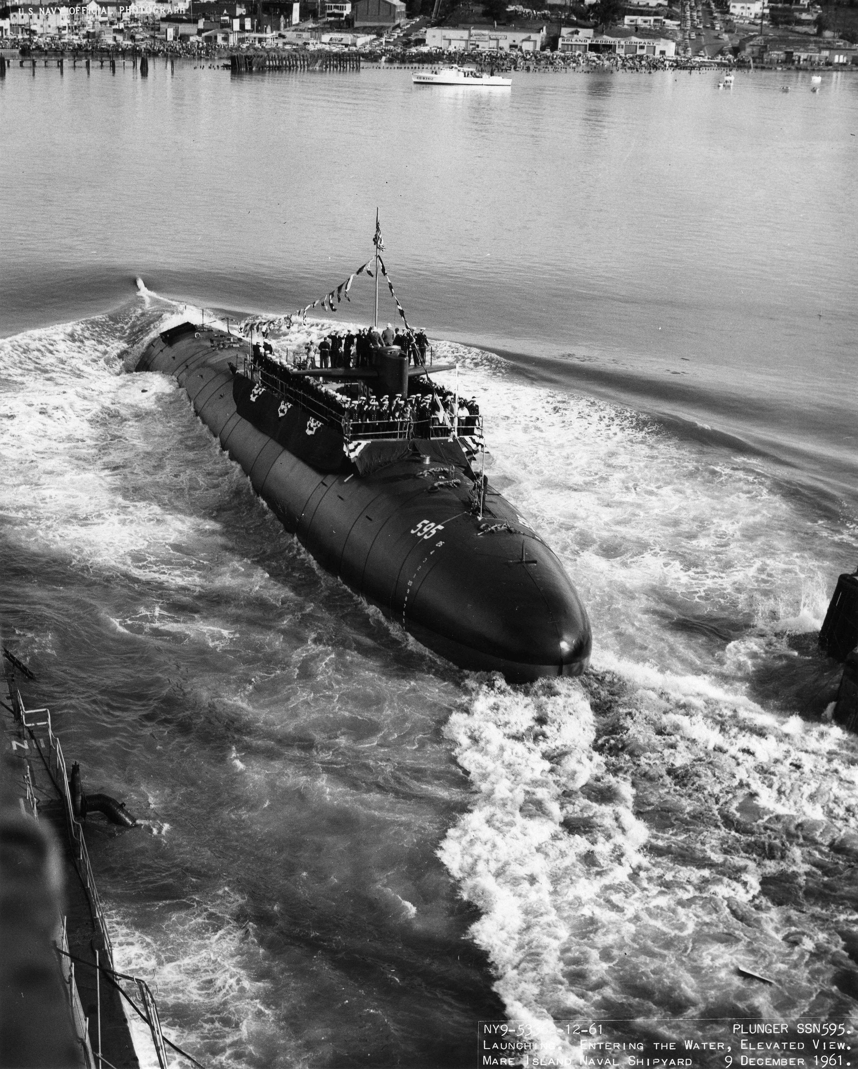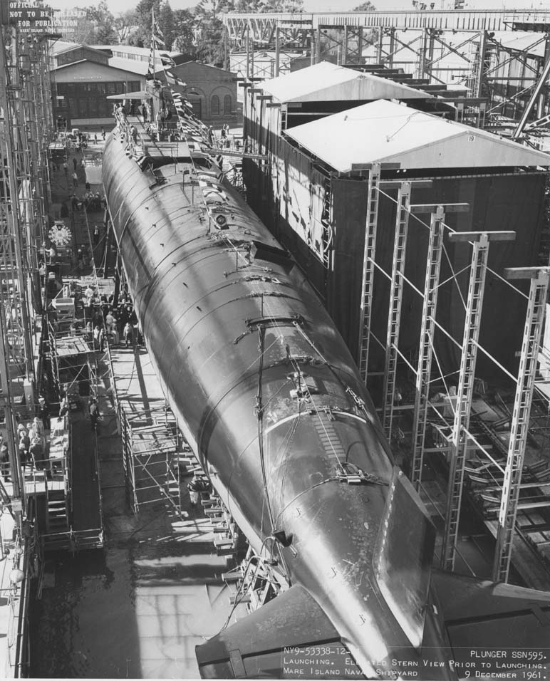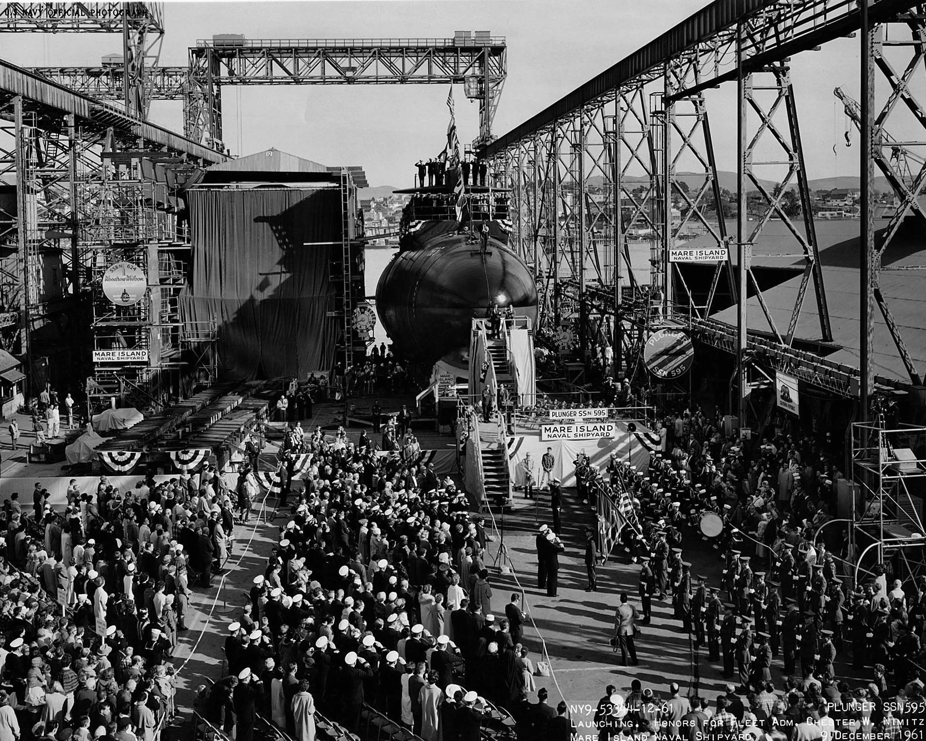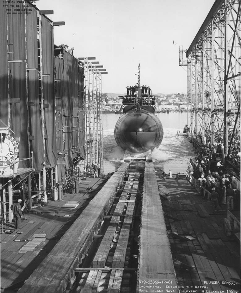 1.10k | Commissioning ceremonies for the Plunger (SSN-595) in Mare Island's dry dock #3 on 21 November 1962. | USN photo # 57040-11-62, courtesy of the Vallejo Naval and Historical Museum via Darryl L. Baker. | |