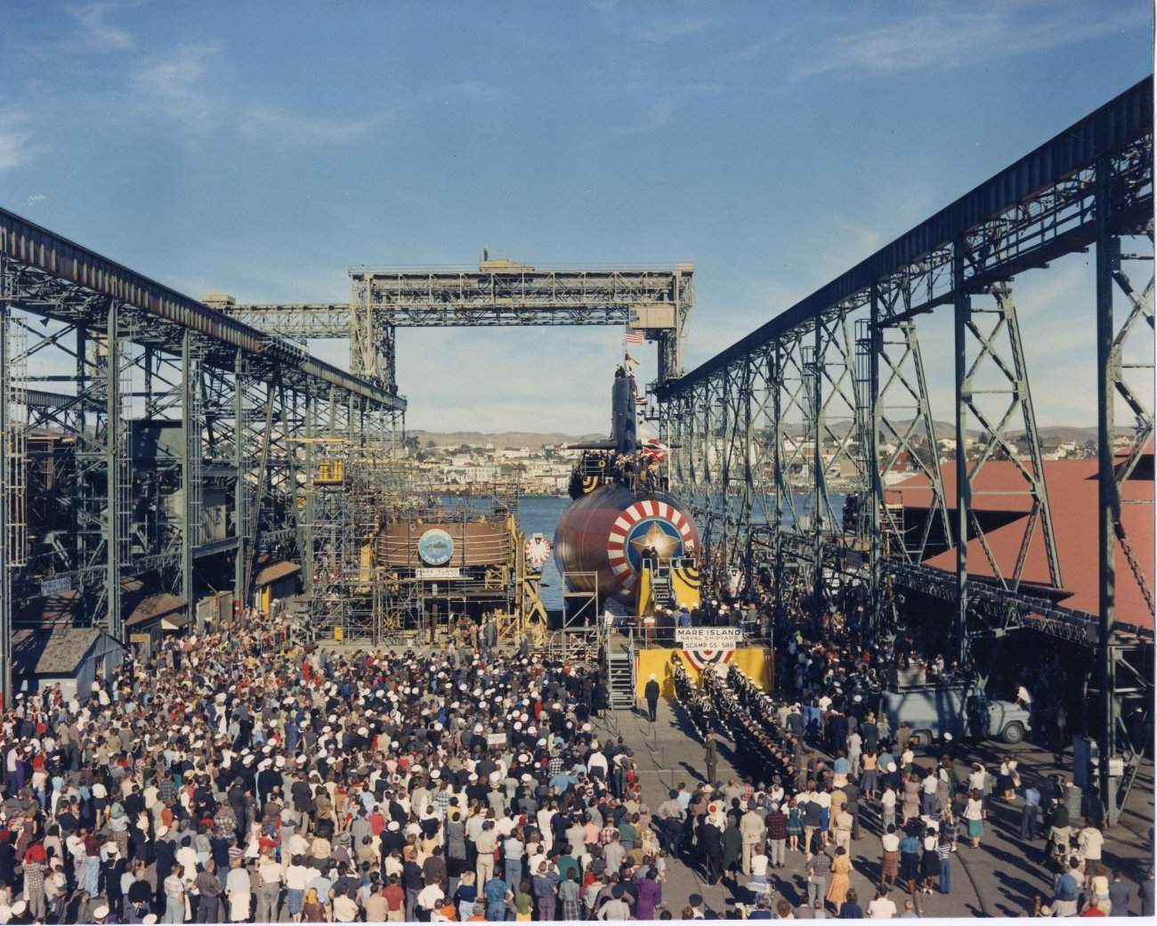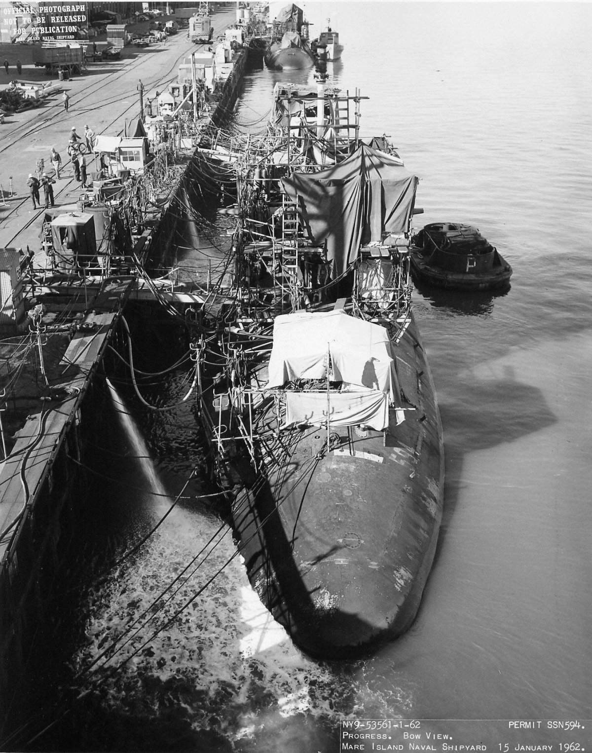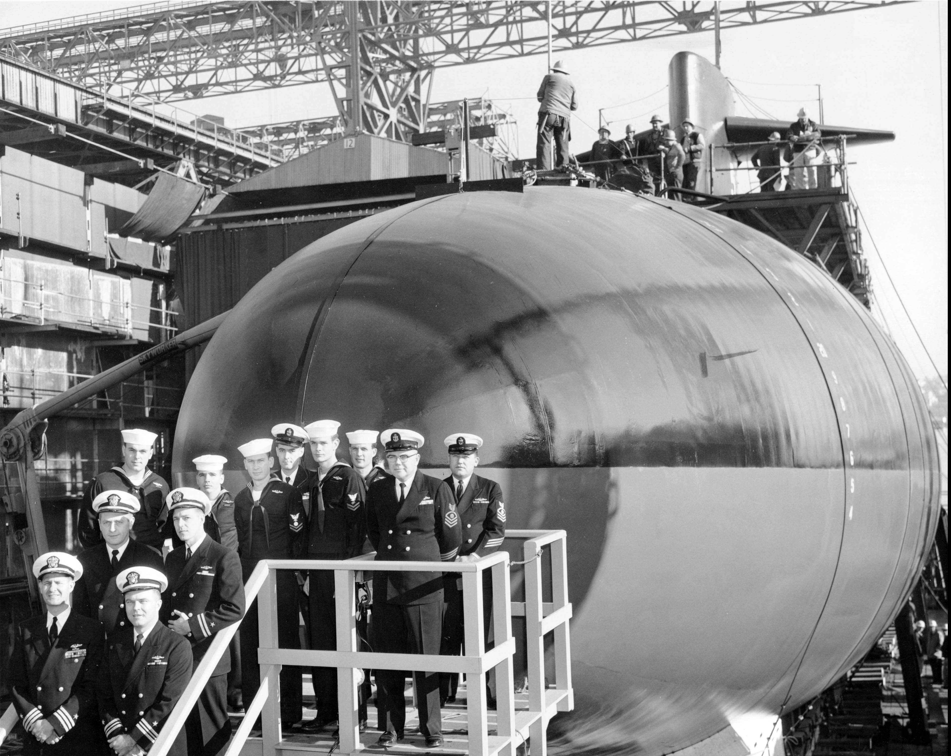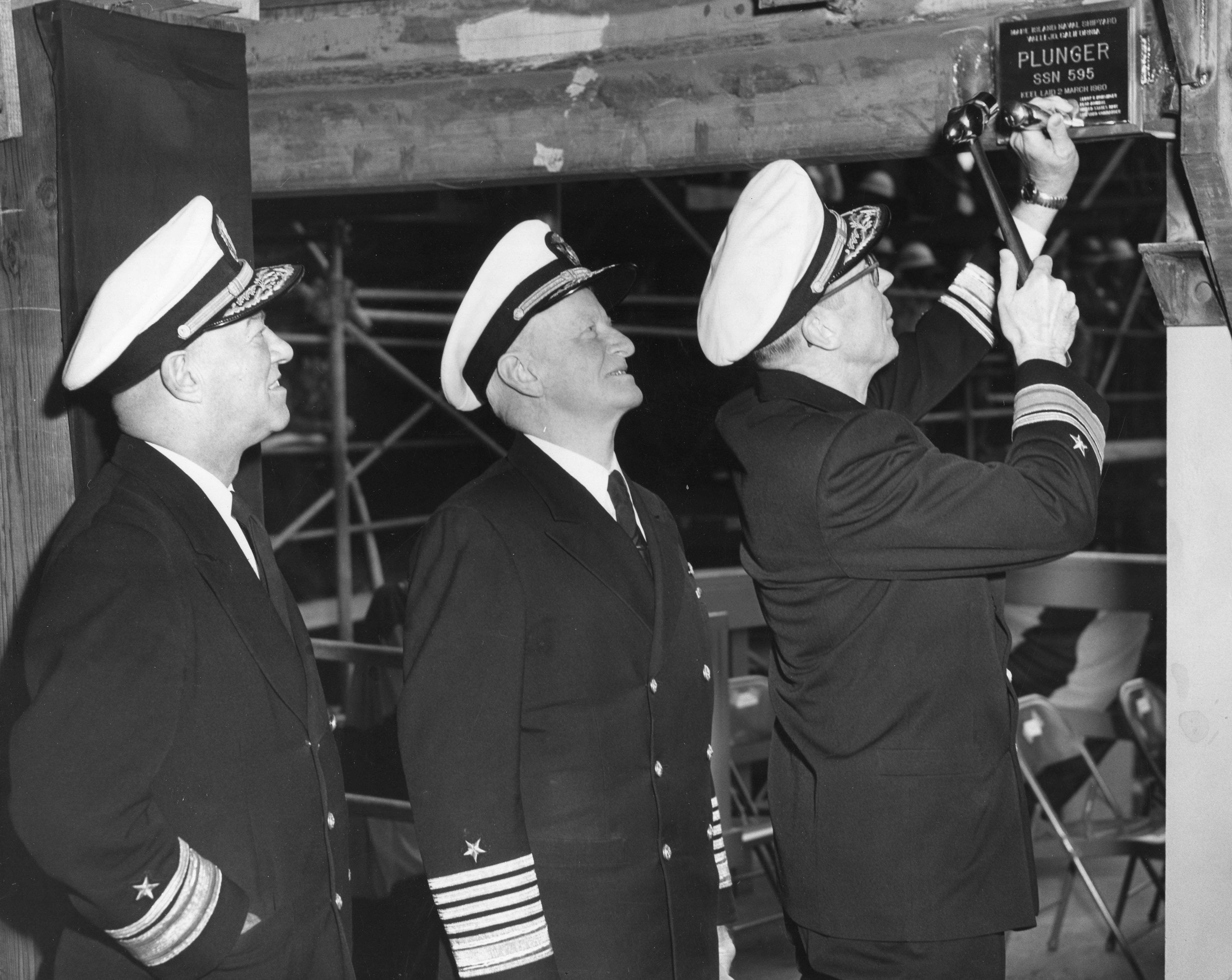 1.10k | Commissioning ceremonies for the Plunger (SSN-595) in Mare Island's dry dock #3 on 21 November 1962. | USN photo # 57040-11-62, courtesy of the Vallejo Naval and Historical Museum via Darryl L. Baker. | |